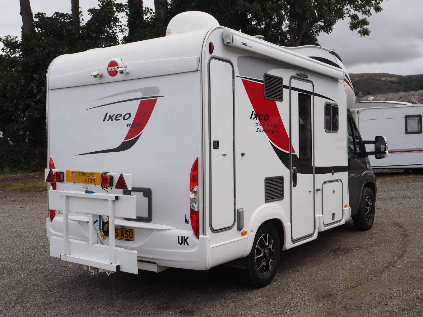 Packed with features including duel fuel heating and hot water, refillable gas-lo system (ideal for European travel), Satelite TV dome and aerial and includes an Avtex TV, rear tow bar with scooter carrier (removable), external BBQ point and hot/cold shower point (great for rinsing muddy walking boots, bikes, dogs!), solar panel and a rear reversing camera. The cab has a built in entertainment system, rear reversing screen, sat nav, cab air conditioning, cruise control and limiter and electronic front windows and adjustable mirrors. The cab is fitted with pull across Remis concertina blinds for night-time privacy.