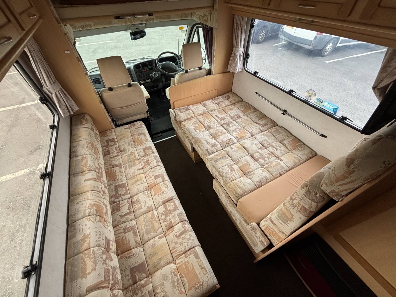 Powered by a 2.8 litre diesel engine and built on the Peugeot chassis, this Compass has a 5 speed manual transmission gearbox, and weighs 3200KG meaning it can be driven on a standard UK licence, with a length of 5.8m (6.0m including the bike rack) the Compass is easy to drive, park, store and no adventure/road is off limits.