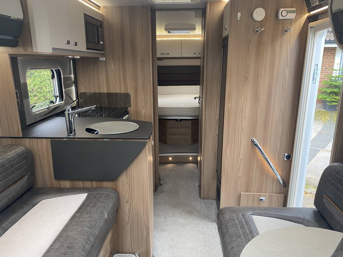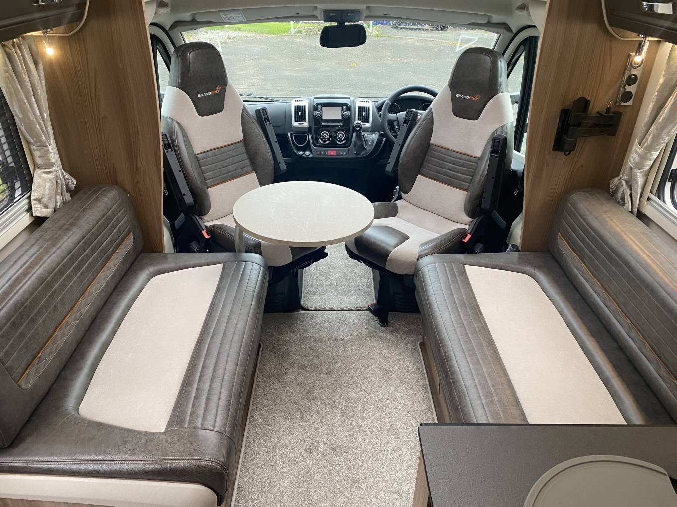 - Swiveling driver and passenger seats, add to the already generous lounge area, that again as part of the Grand Prix upgrade have the lovely luxury leather upholstery, as well as an additional round adjustable table
