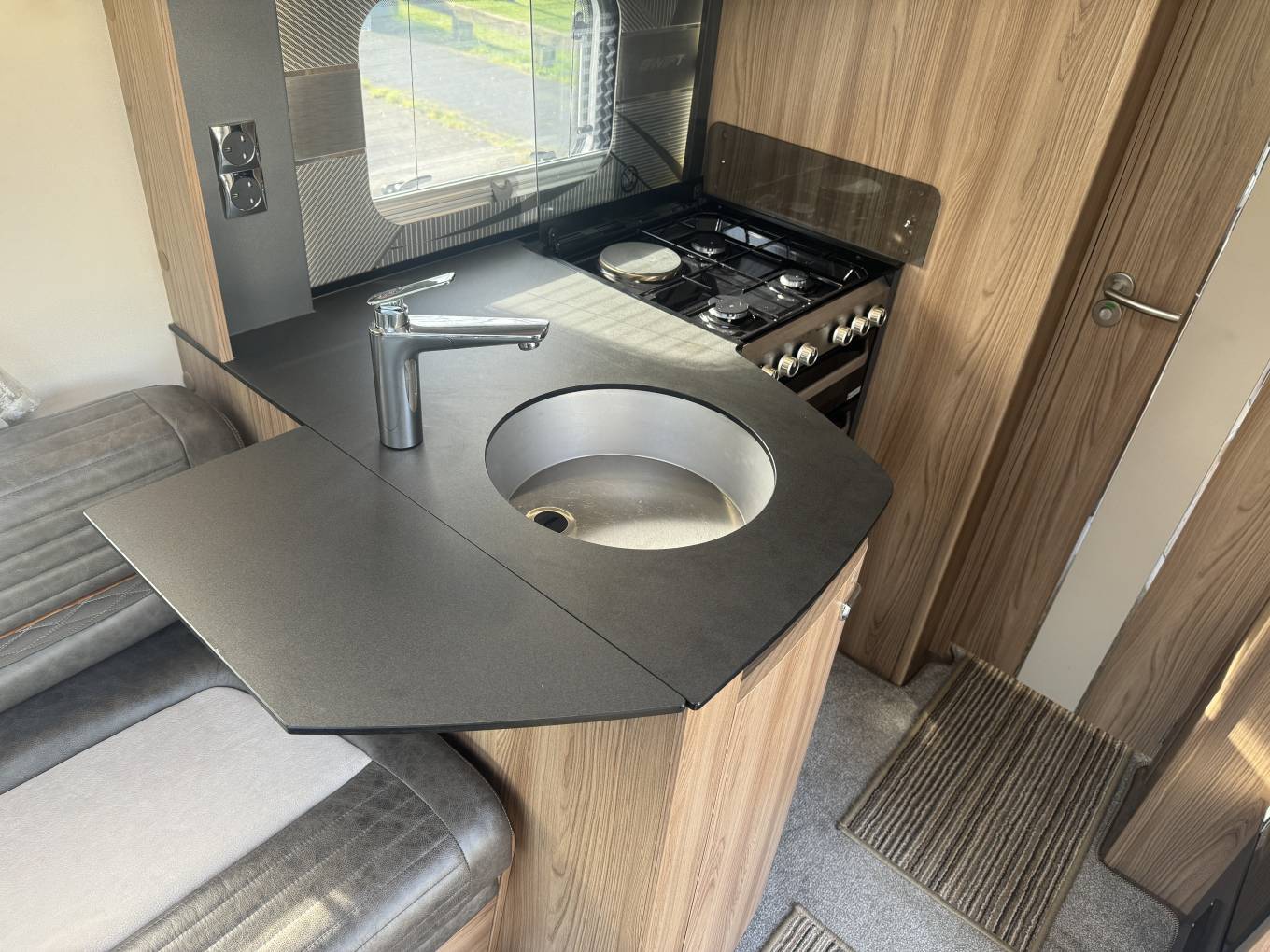- Kitchen is comprehensively equipped, with everything you for your travels, including - 3 ring gas hob, Electric burner hob/hotplate, Thetford oven with grill