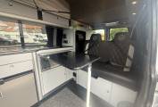 This professionally converted campervan has Propex gas blow heating system fitted, a Solar Panel, Fiamma fixed awning and modern bespoke curtains fitted. It also has a Rock and Roll Bed with Easy Up / Down Mechanism, Fitted Windows (Including One Sliding), Large Swivel Front Passenger Seat, Dining Table, Gas 2 Burner Hob, Sink & Tap, Fitted Water Tank, Power Management Including: 240v Socket, 12v Sockets, 1 x Leisure Battery, Insulated Floor & Walls, Ply & Carpet Lined, Upper Cabinets and Storage, Compressor Fridge, an Electric Mains Hook Up Outlet, Reversing Sensors and Thermal Window Covers. Upstairs the pop top is also a comfortable fit with mattress and widows and creates an open space when not being used to stand up in the van.