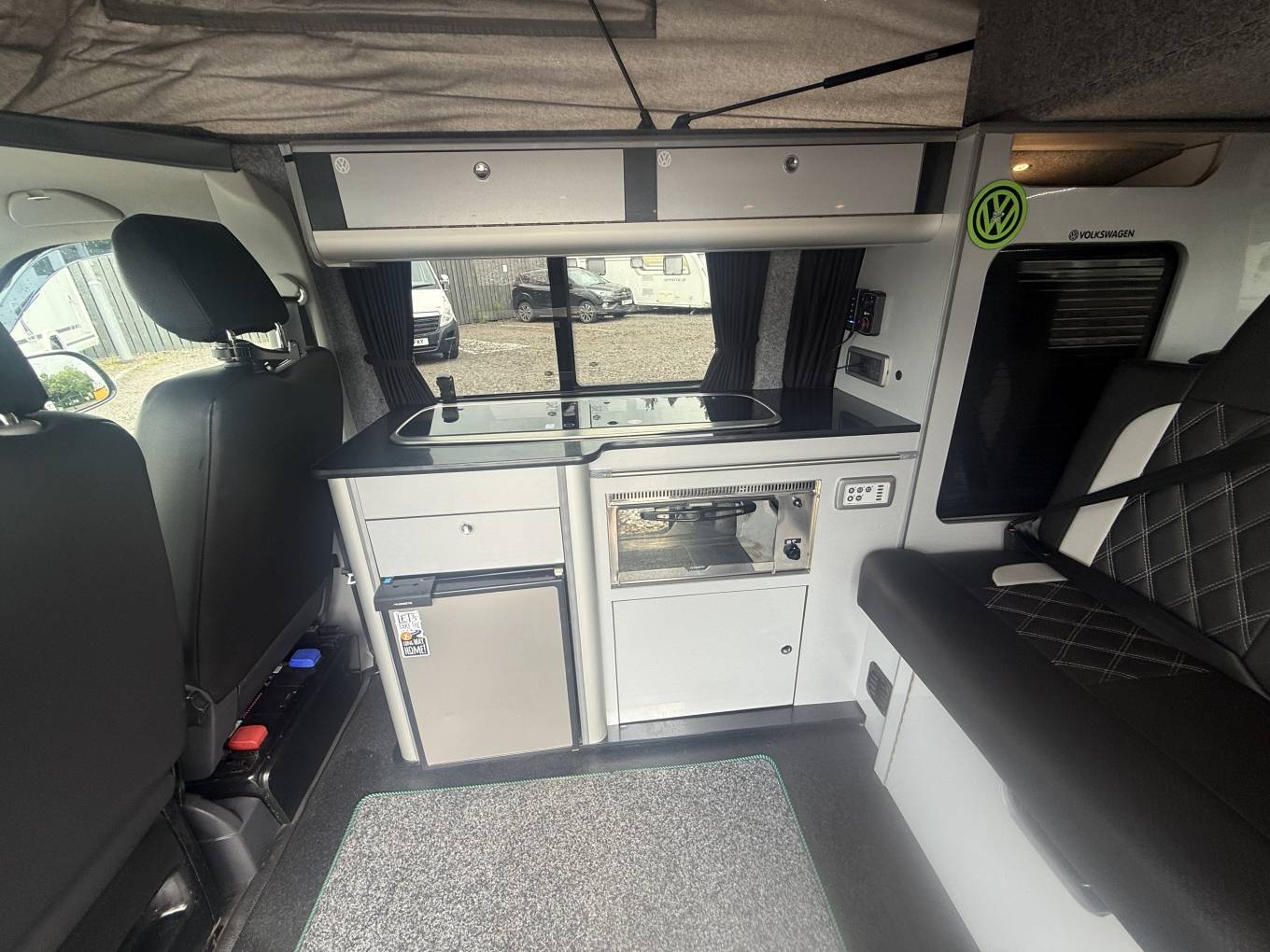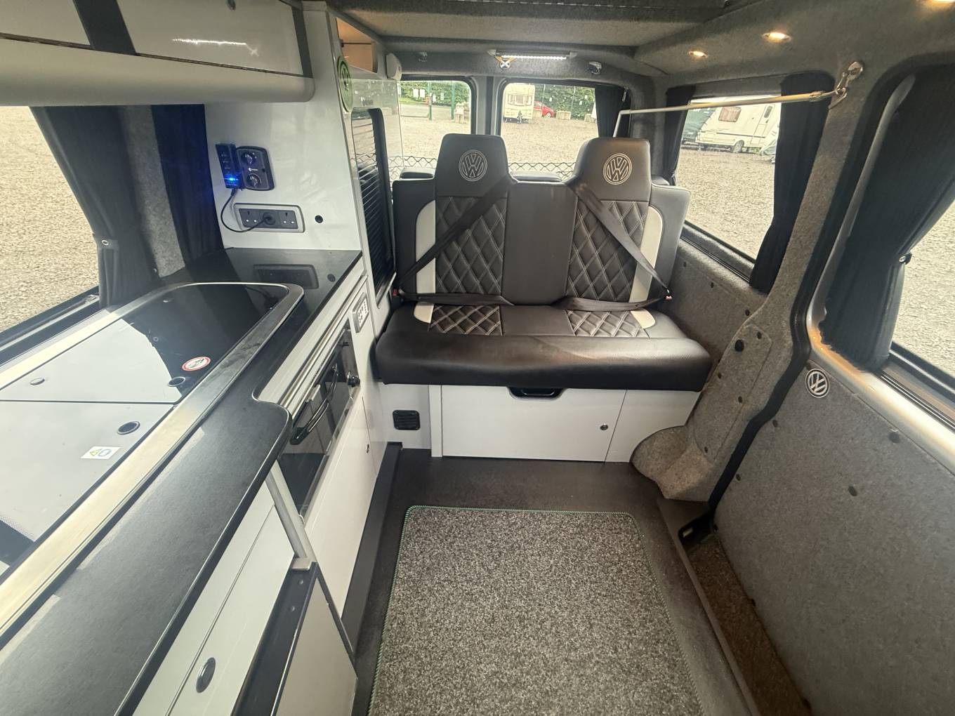This is a VW Highline which packs absolutely everything in that you need for your travels and has its length of 4.9 metres making it easy for anyone to drive and park and its maximum weight is at 3000 kg allowing anyone with a standard UK driving licence and it’s economical to drive with its engine at 2000cc.