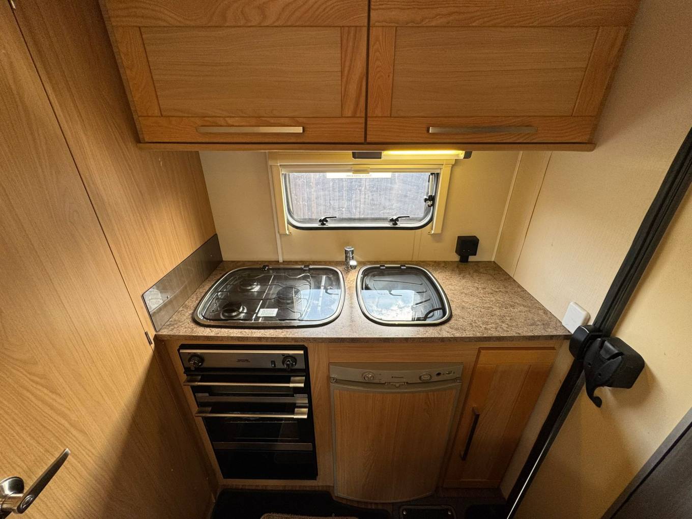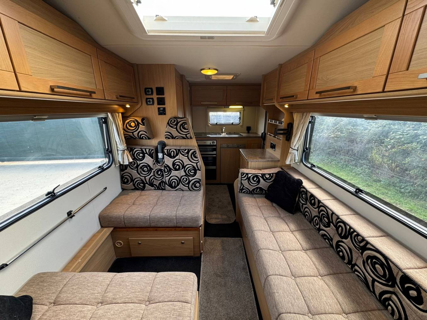 This model features an over-cab double bed and a rear kitchen layout, maximizing living space and comfort. With a gross weight of just 3300kg, it's under the 3500kg threshold, meaning it can be driven on a standard driving licence.