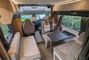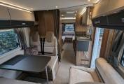 Inside, the motorhome is finished to a high standard throughout with luxury feel upholstery, cab air conditioning, Alde wet heating system and mood lighting. There's also a fitted TV and aerial, Autocruise radio with Bluetooth, USB charging points, and an extractor fan to keep the living area fresh.