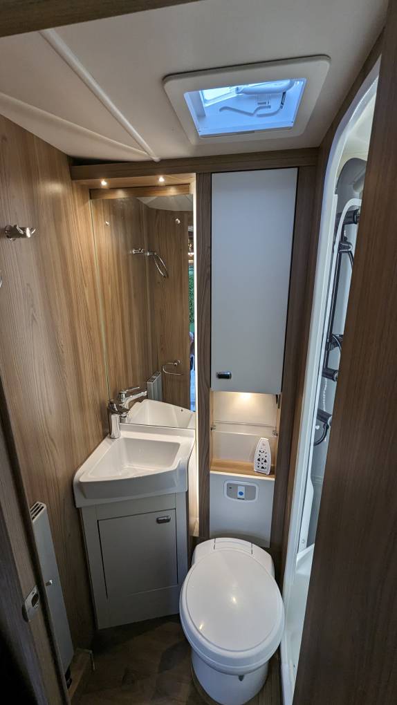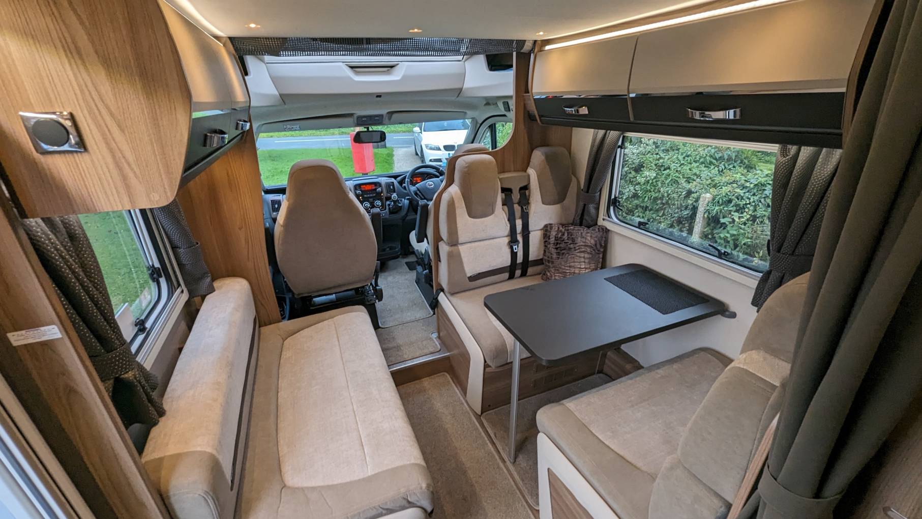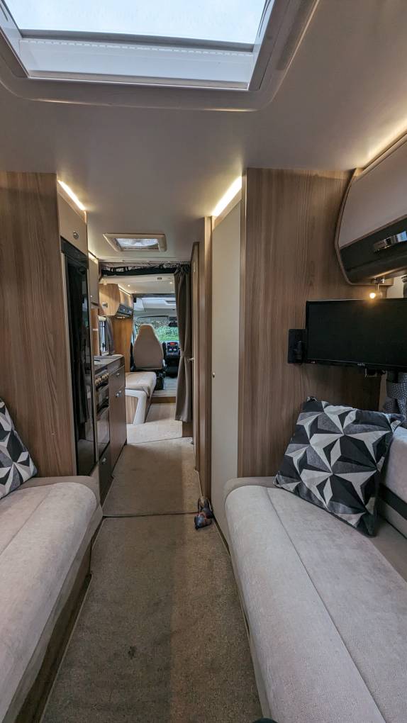 Built on the Fiat Ducato chassis, it’s powered by a 2.3L Euro 6 diesel engine with AdBlue and fitted with a manual gearbox. The motorhome is 8.11 metres in length and has a gross vehicle weight of 4,250kg, meaning a C1 licence is required to drive.