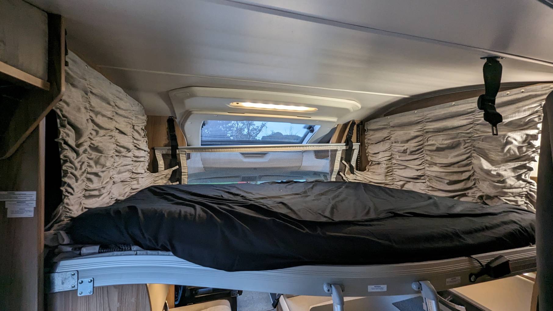 Externally it’s fitted with a Thule Omnistor wind-out canopy awning, a reversing camera and sensors, electric step, alloy wheels, an electric opening sunroof that adds natural light to the cab, a fitted bike rack, solar panel, and an external gas BBQ point, deal for outdoor cooking on your travels.