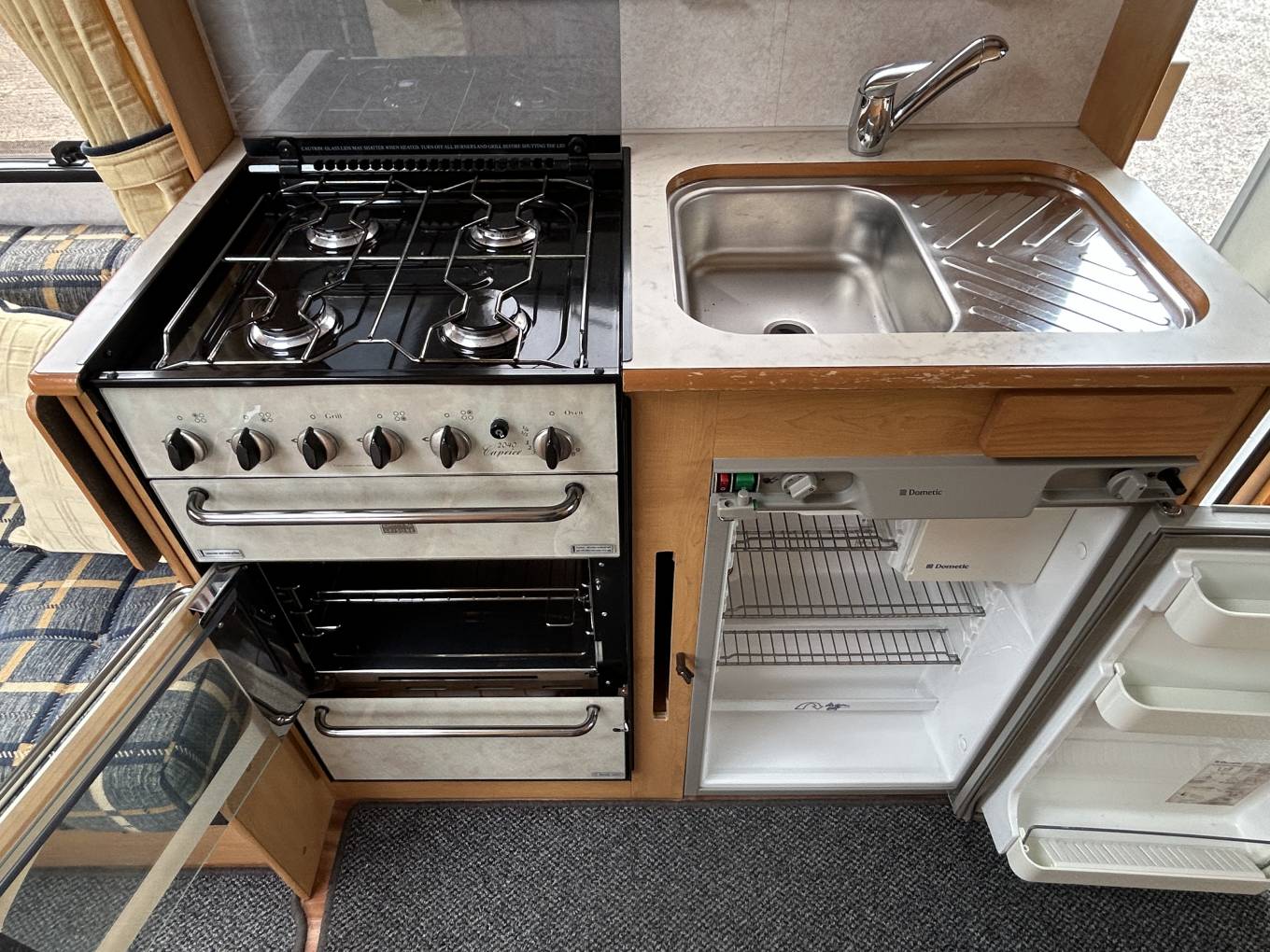 is fully equipped with a 4-burner gas hob, oven, grill, microwave, and a