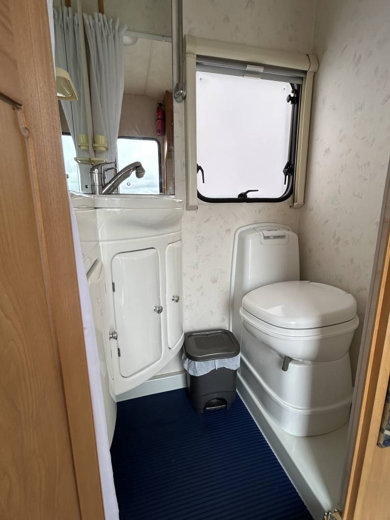 fed on the road. The washroom includes a Thetford cassette toilet, wash
