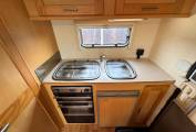 Inside, you’ll find a spacious living area that converts easily into a large double bed, perfect for relaxing or dining. The kitchen is fully equipped with a hob, oven, fridge/freezer, and sink, and the washroom offers great facilities for life on the road. This motorhome also features a Truma heating system, making it suitable for year-round travel.