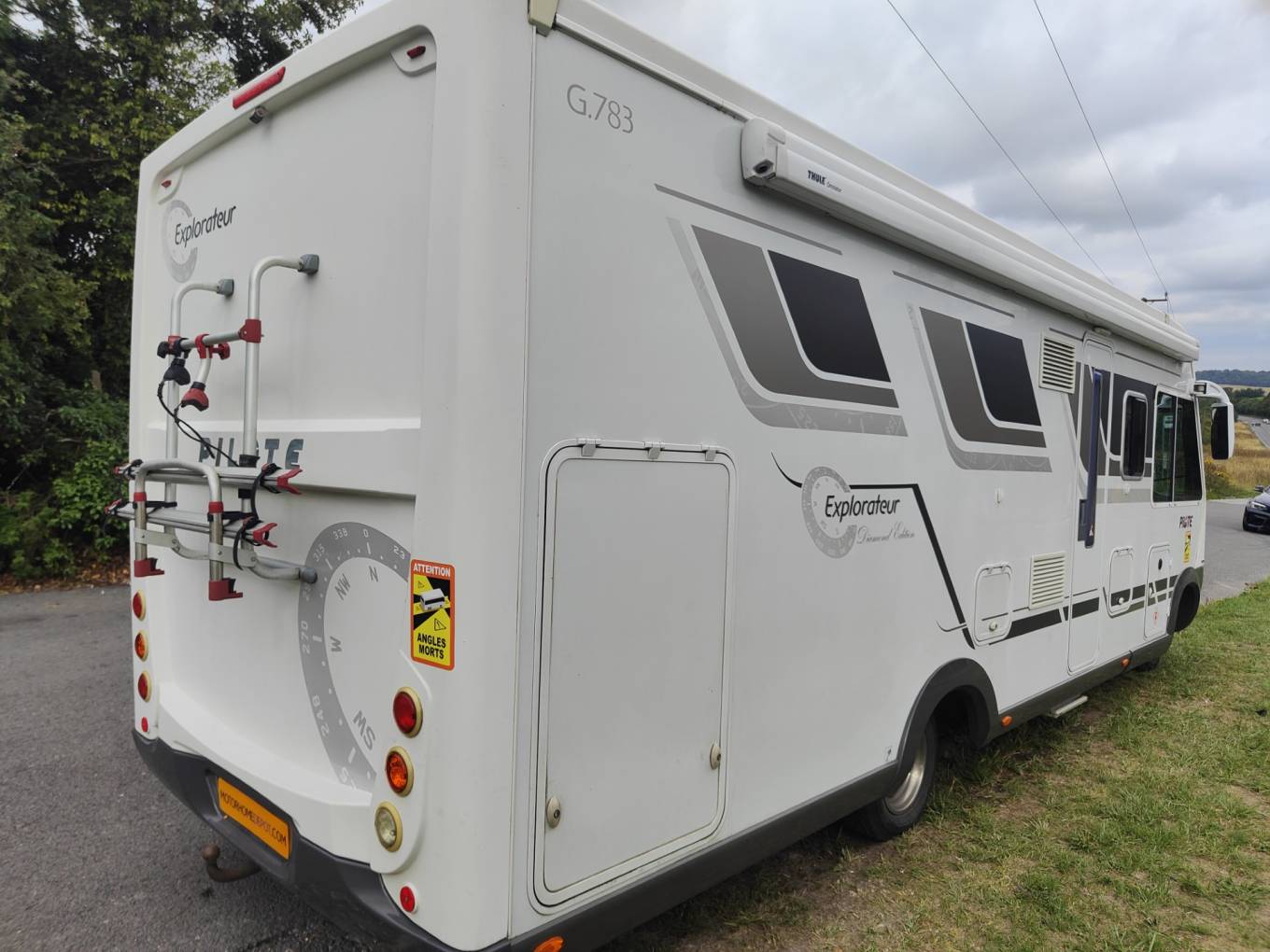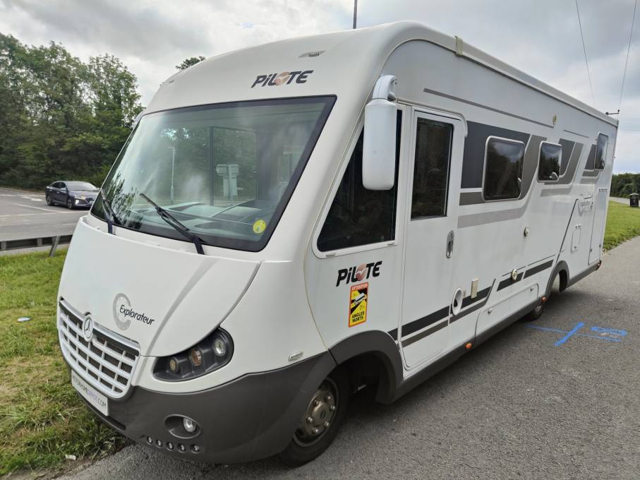 This is a great example of the top of the range Pilote Explorateur G783 Diamond edition. This 8 metre Garage version has the electric raising transverse double to the rear with ensuite bathroom with separate shower, a well equipped and spacious centre kitchen plus a front dinette that utilises the two rotating Captains seats with a large drop down double above. This motorhome has the desirable Alde wet heating system alongside the standard Truma boiler. Based on the astonishing Mercedes chassis with a V6 3.0 engine with automatic gearbox producing 190 bhp. This example has a long list of extras including 2x solar panels with 2 batteries, satellite dish, towbar, awning, cycle rack, tv and dvd and Gasit refillable bottles with 2x 13 kg propane bottles. 64k miles from new with only 2 owners. This large spacious motorhome is plated at 5000kgs so a C1 licence is required. THIS MOTORHOME IS LEFT HAND DRIVE.