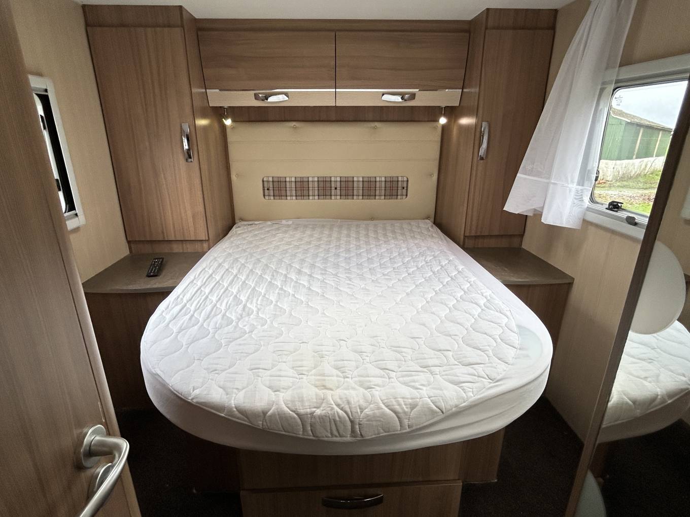 This Aventura G740 is equally impressive on the outside. A solar panel supports off-grid adventures, while external gas and shower points add practicality for alfresco living. There’s a bike rack for three cycles, a wind-out awning for shaded outdoor dining, reversing sensors and a reversing camera for easier parking, plus a tracker system for added security. Cab air conditioning ensures comfortable driving in warmer weather, and onboard entertainment is covered with a 12/230v TV and a fully integrated media system with radio, CD, Bluetooth and USB connectivity.