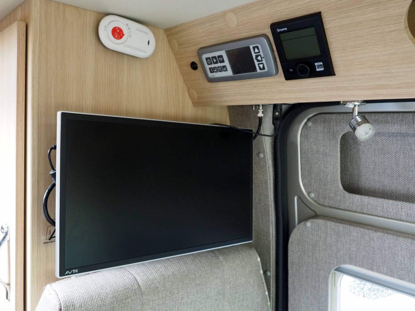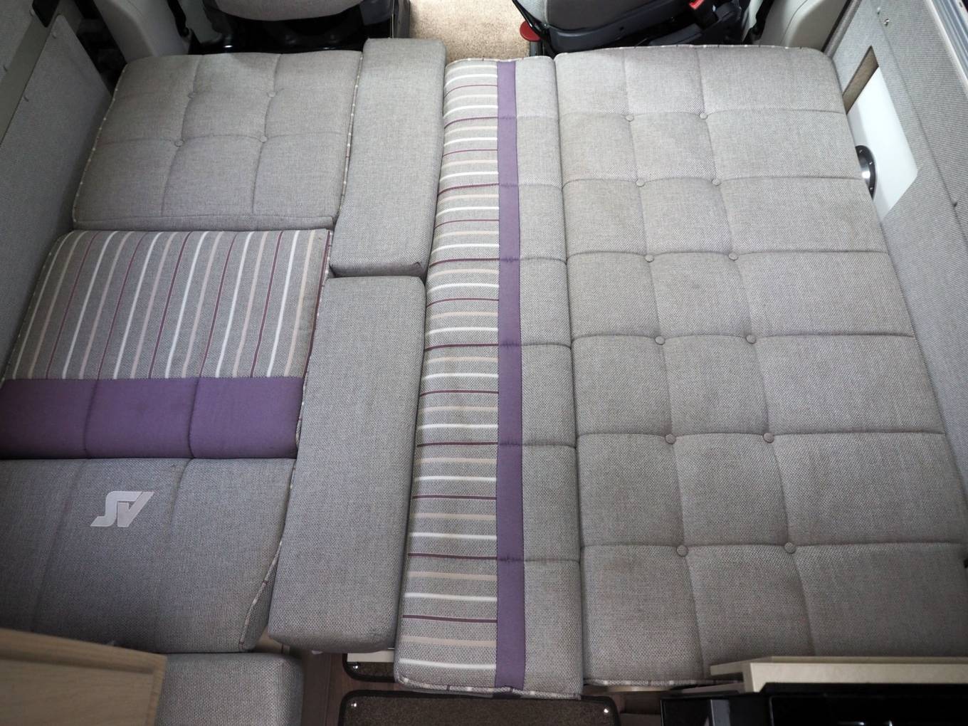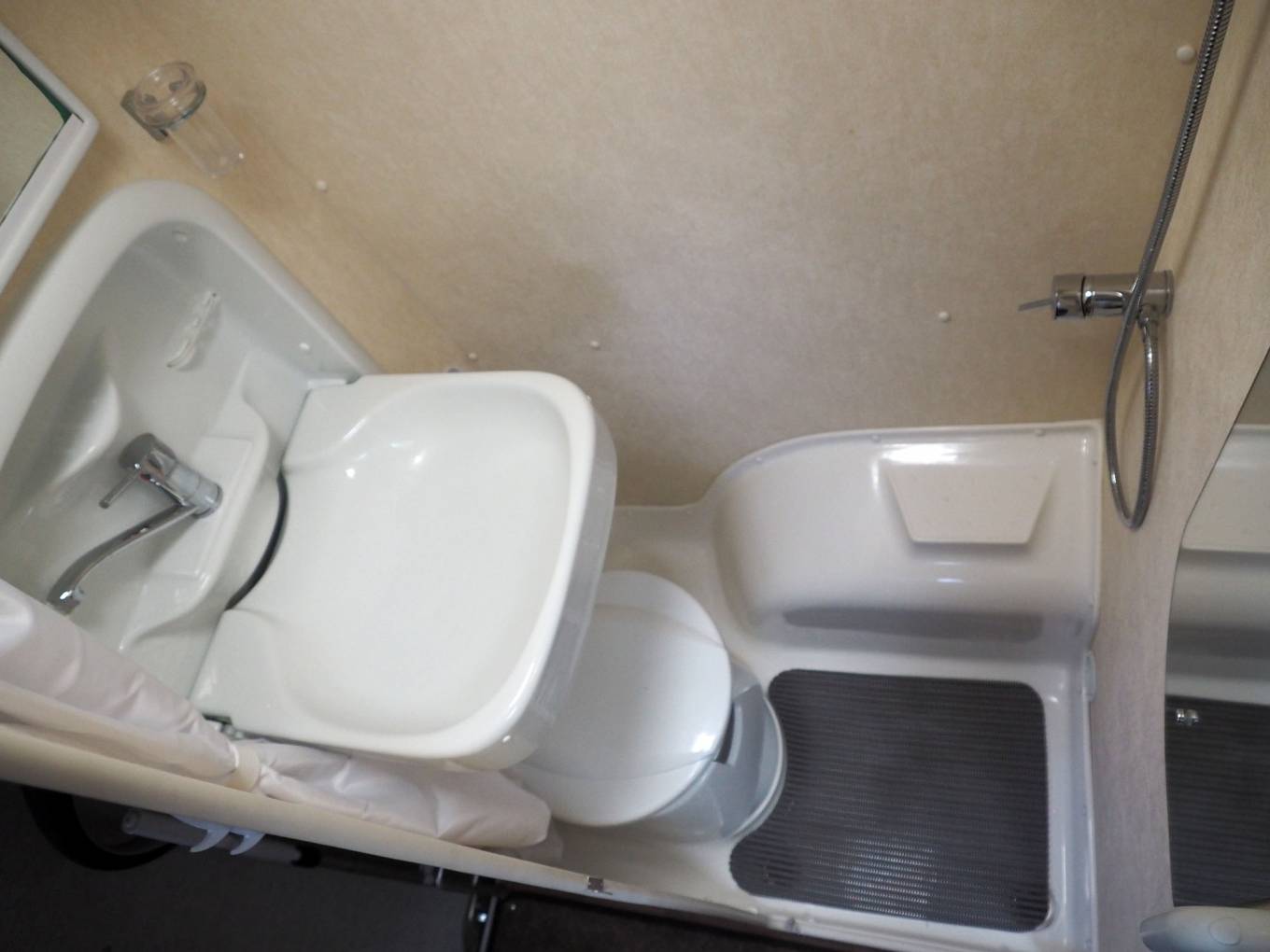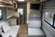 There is excellent living space and facilities in this very compact package. Once the cab seats are swivelled there is plenty of living space and there are options for twin singles or a double bed. There is a useful overcab store and further storage under the bedboxes, plus a good sized wardrobe. The kitchen is well equipped with 3 burner gas hob, gas oven and grill, extractor, microwave, fridge and two pull out worksurfaces, while the compact washroom features a tip up sink, toilet and partiallly lined shower with protective curtain.