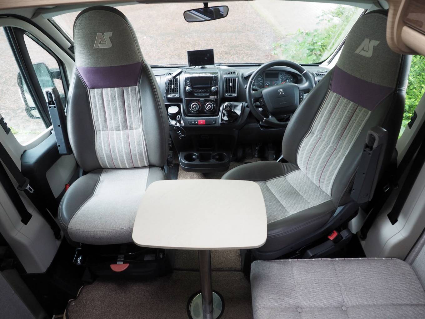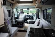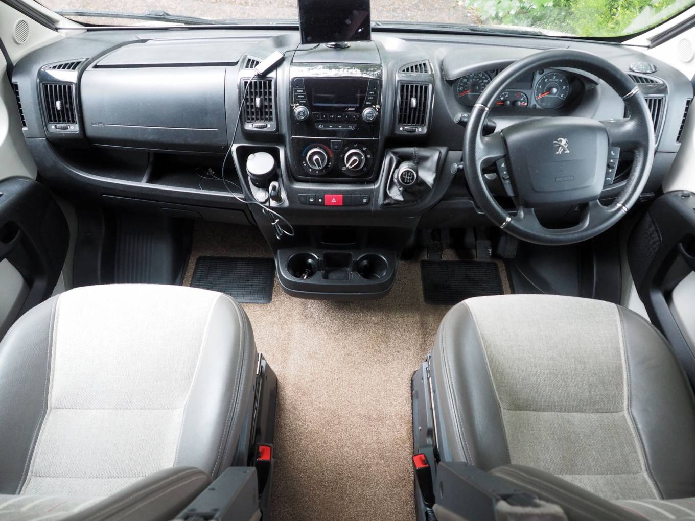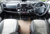 Domestic facilities include onboard domestic LPG tank, dual fuel heating and hot water, underslung fresh and waste water tanks, plenty of lighting options and removable carpets. Up front the drive is easy with 160bhp available from the Peugeot Boxer with a 6 speed gearbox, offering effortless cruising with economy. Other cab features include cab air conditioning, cruise control and integrated night blinds.