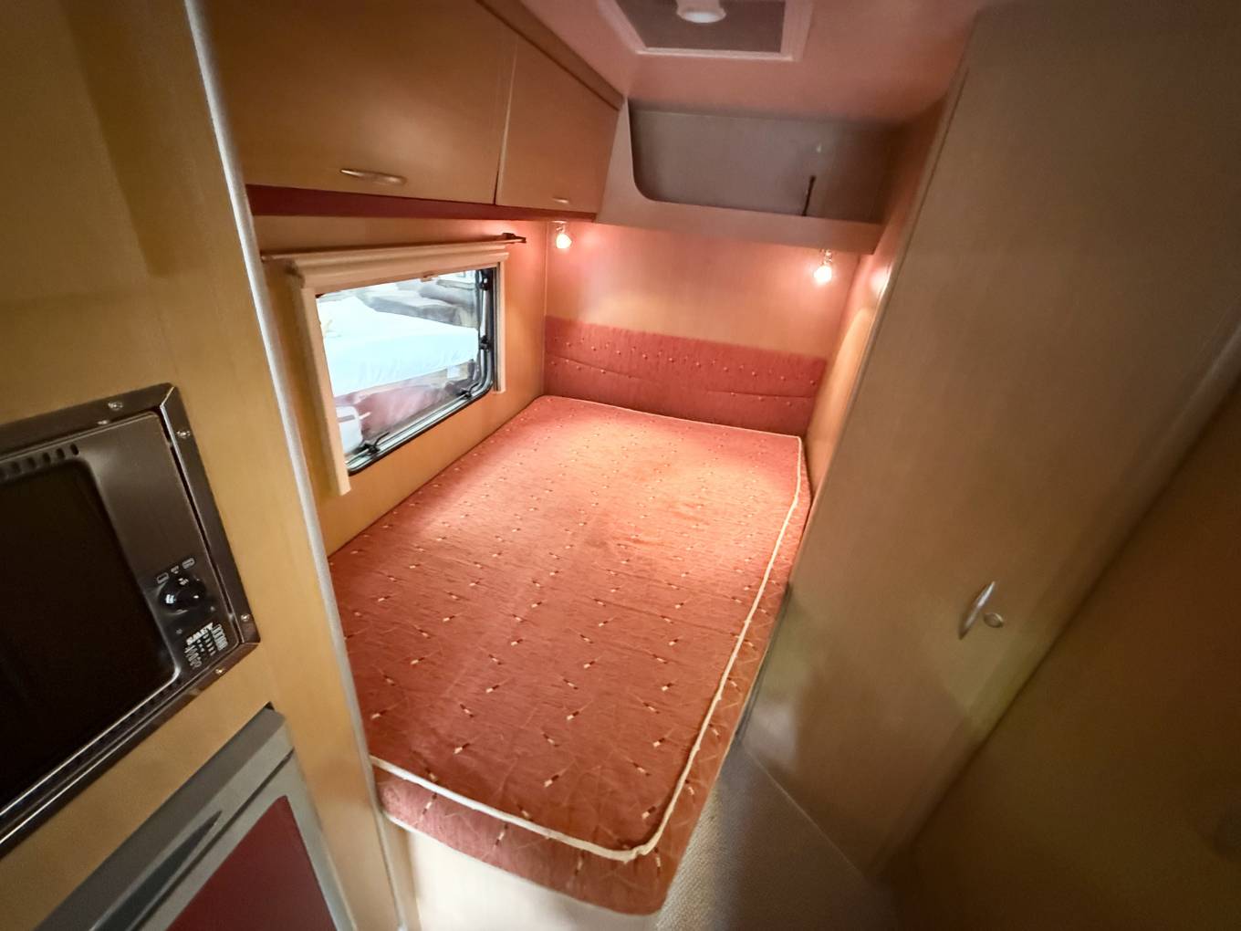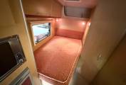 The bed base for the fixed French bed has been substantially strengthened to improve comfort. There is an additional USB/lighter charging point over the bed. All cupboards over the bed have LED lights inside. The garage space under the bed is accessible from inside the van, by lifting the bed, or from the large external hatch.