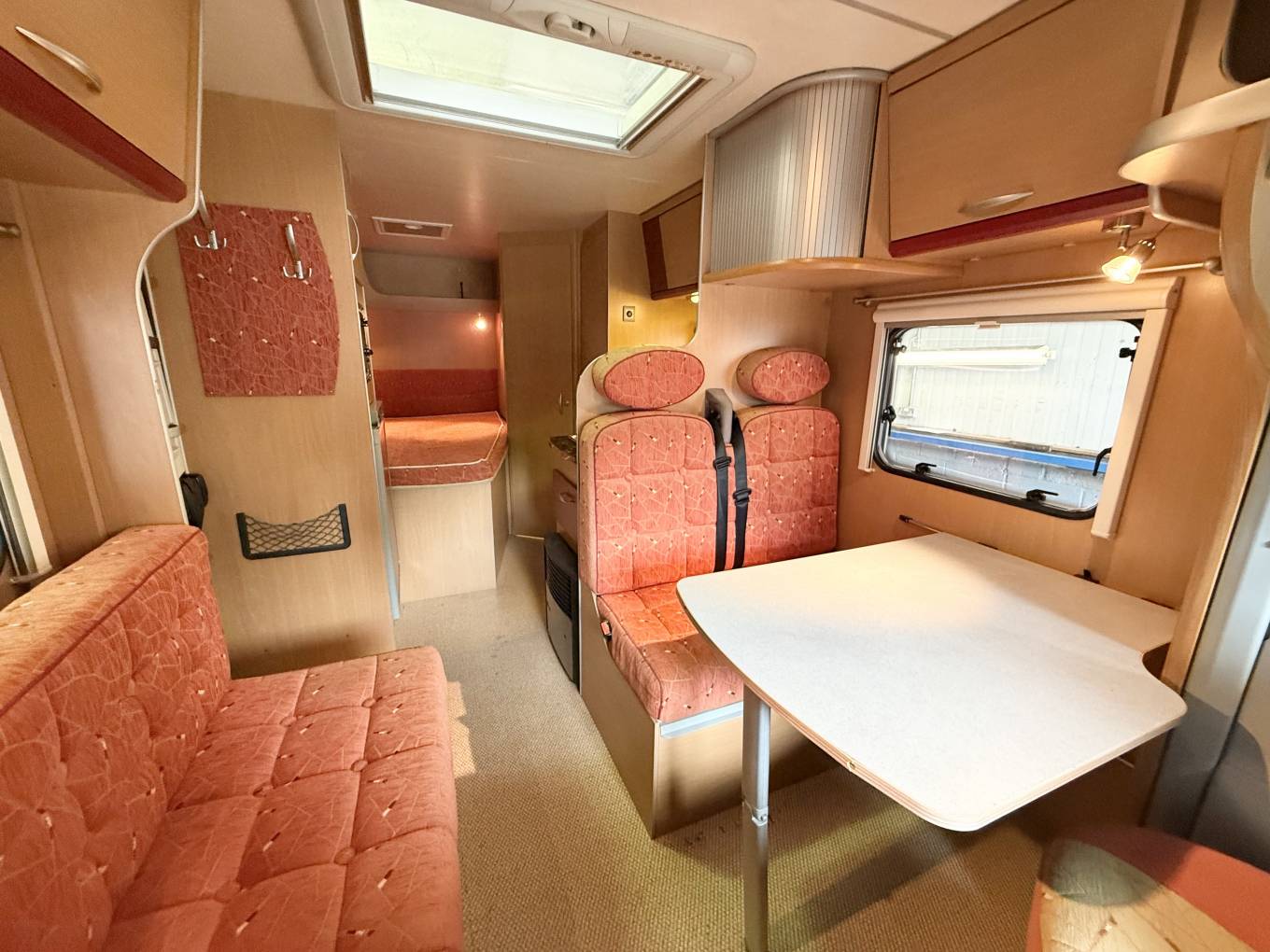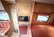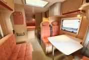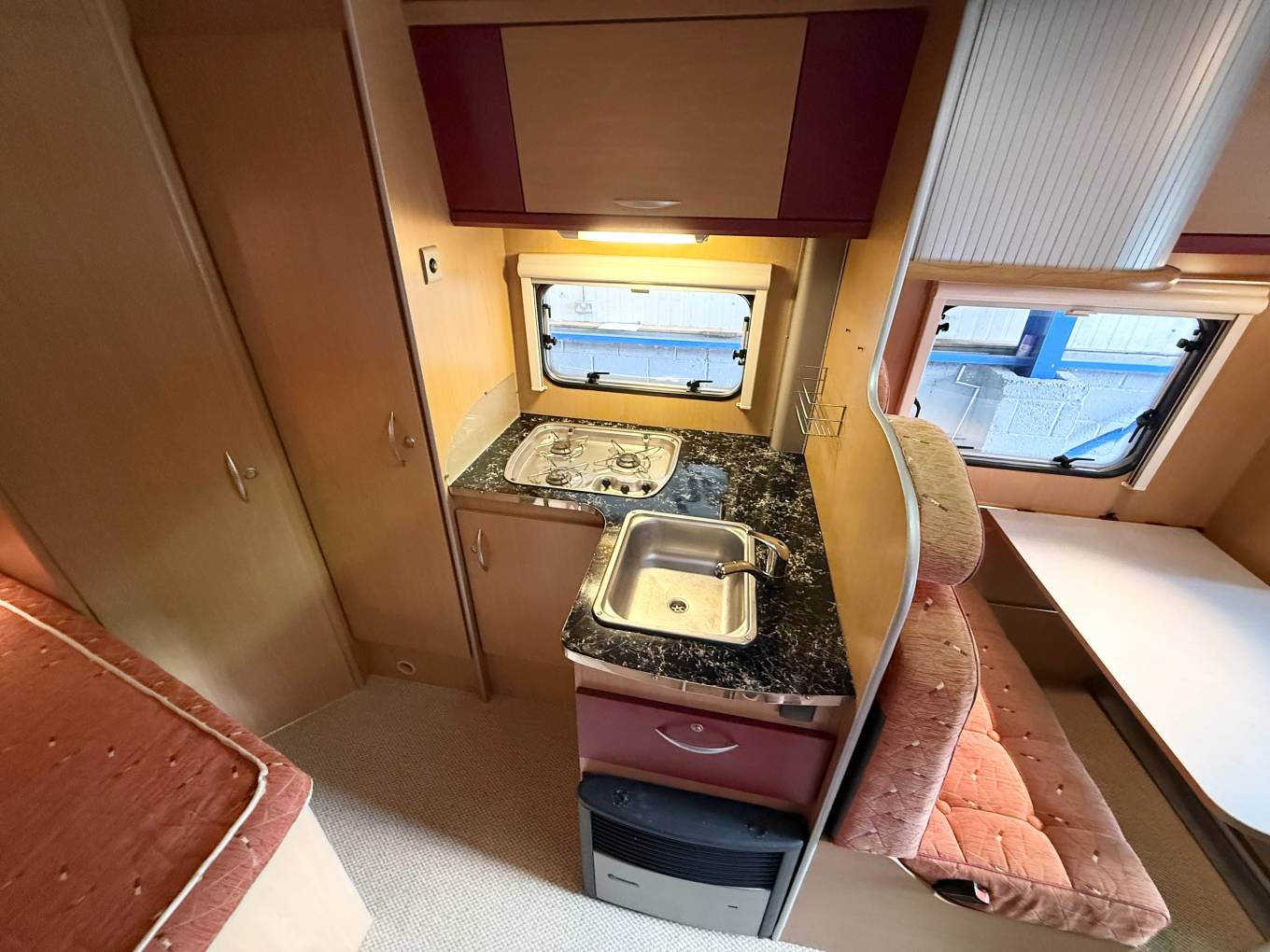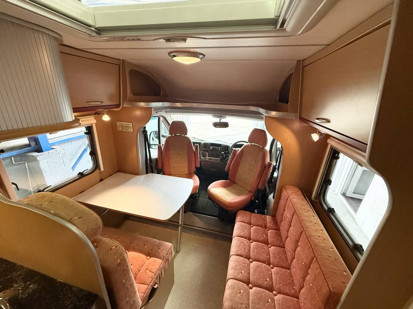 To the rear is a fixed double French bed over a large storage garage space which can accessed by a large external locker door, the dinette area converts into a second double bed.