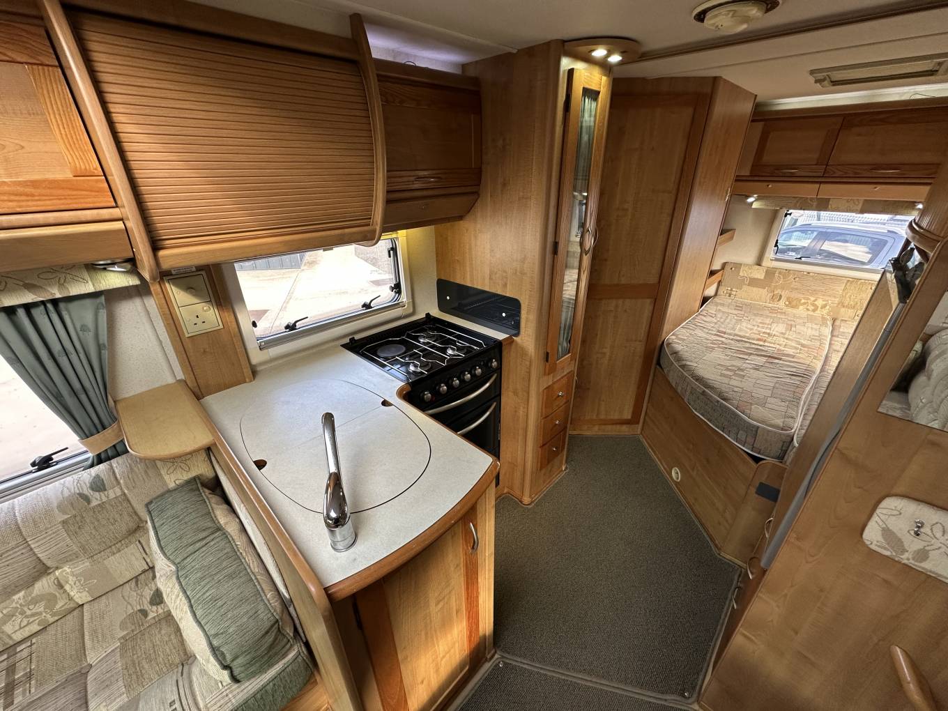 This layout will sleep 4 people in comfort with 2 travelling seat belts.