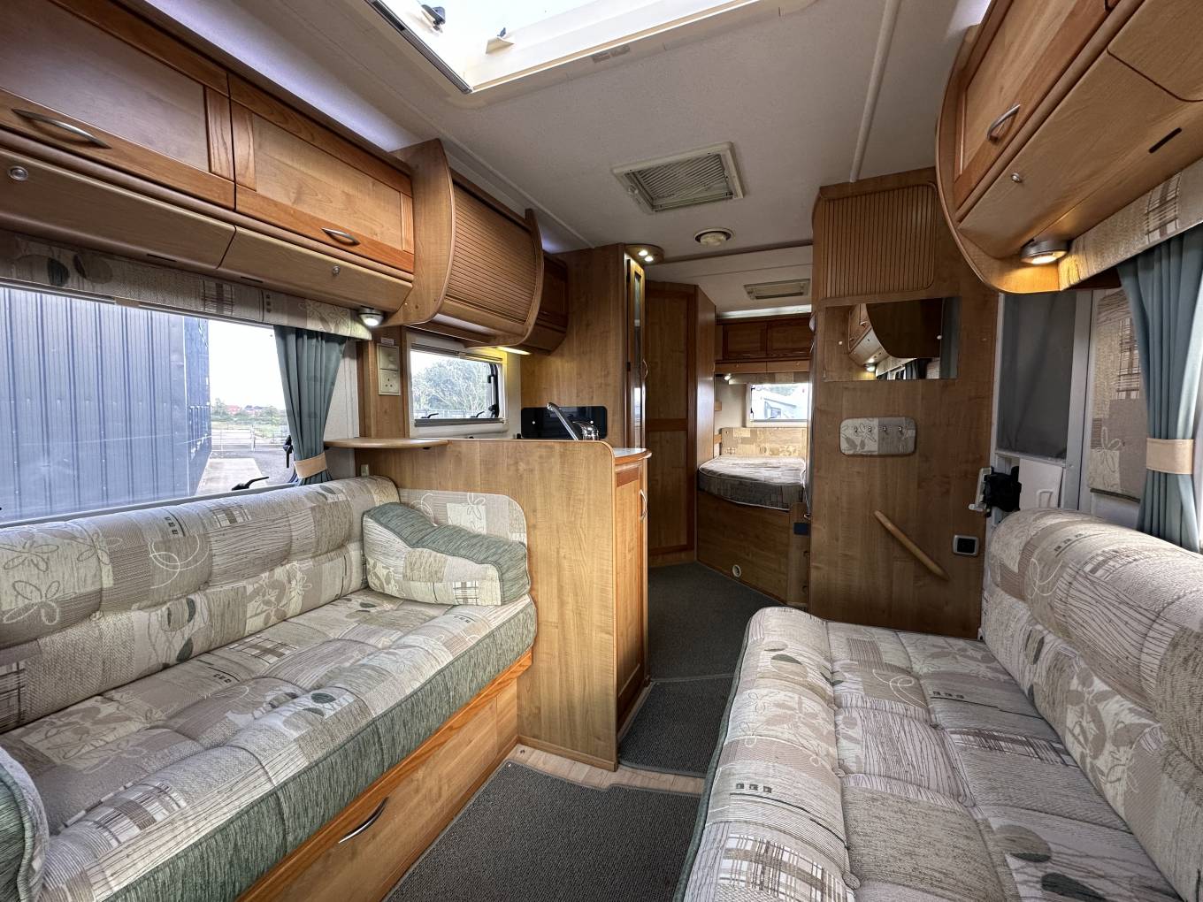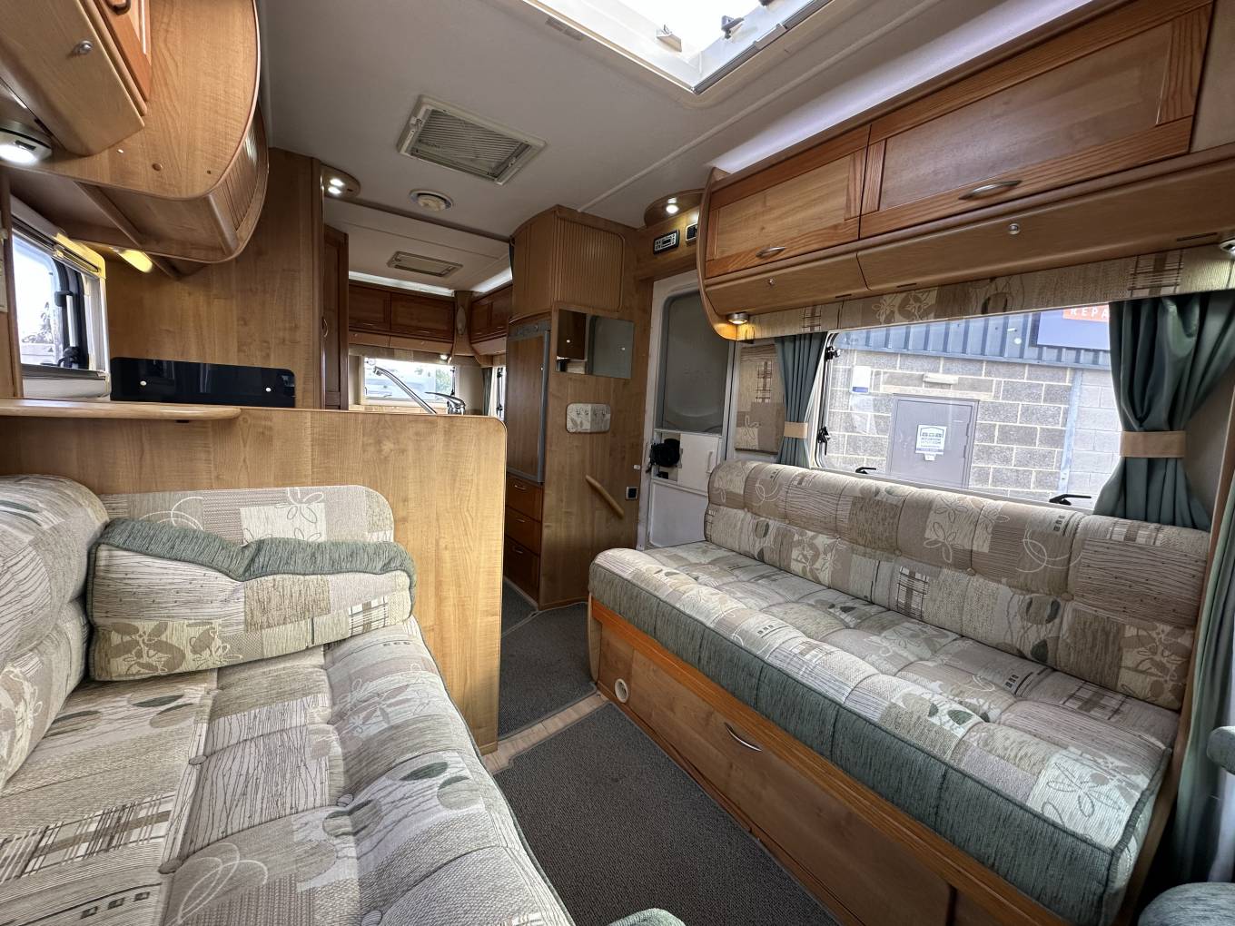 Spacious Living area to the front with two opposing side sofas that will convert into a comfortable double bed and has a stowaway table for dinning. Accomdates 6 adults for dining.
