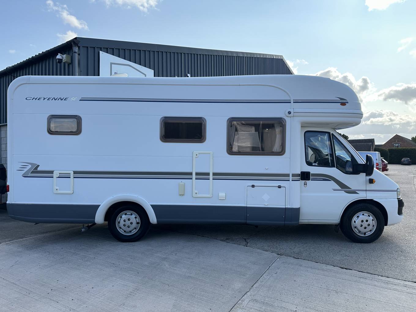 Available at our showroom in Anslow, Burton - 2004 AUTOTRAIL CHEYENNE 660 SE 4 Berth Coach built motorhome with rear fixed bed presented in excellent condition throughout. Complete with Wind-out Awning, Leisure batteries, gas bottle, External Shower & BBQ point, and Tow bar.