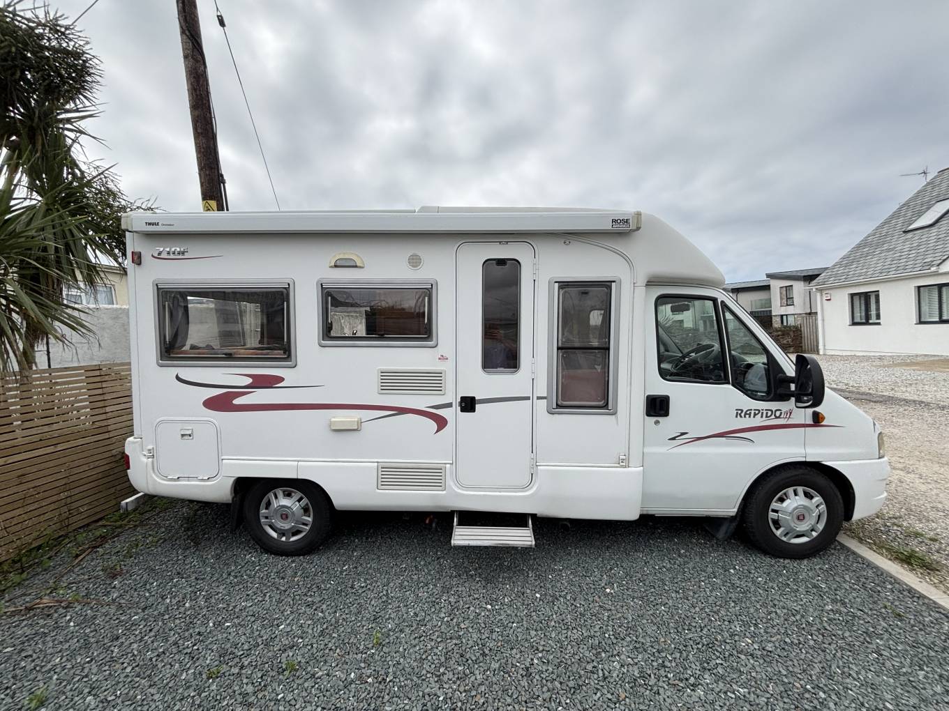 Motorhome Depot Cornwall presents this 2004 Rapido 710F. A 4 berth, low profile motorhome that is built on a 2.3lt Fiat chassis with a 5 speed manual gearbox, this compact family motorhome can be driven on a Standard UK licence, is just 5.6 metres in length and comes with Cab Air Con amongst other key features listed in the advert.
