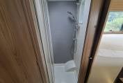 The kitchen area again has a good amount of equipment, including an oven/grill, 3 burner gas hob and a microwave - the worktop also extends and there is ample storage for all your needs.