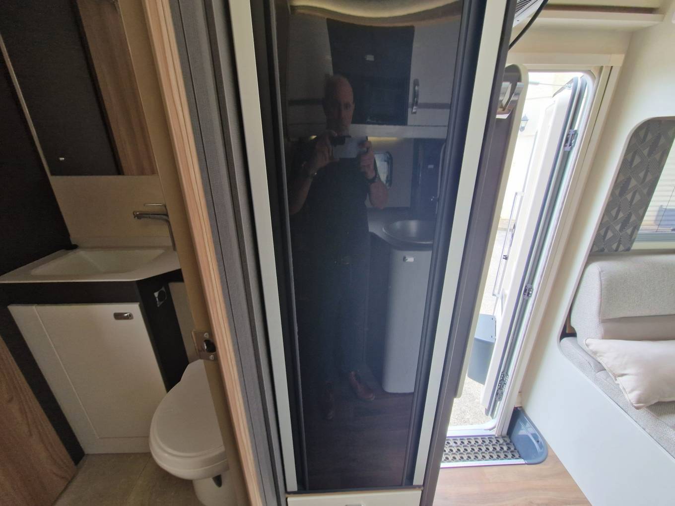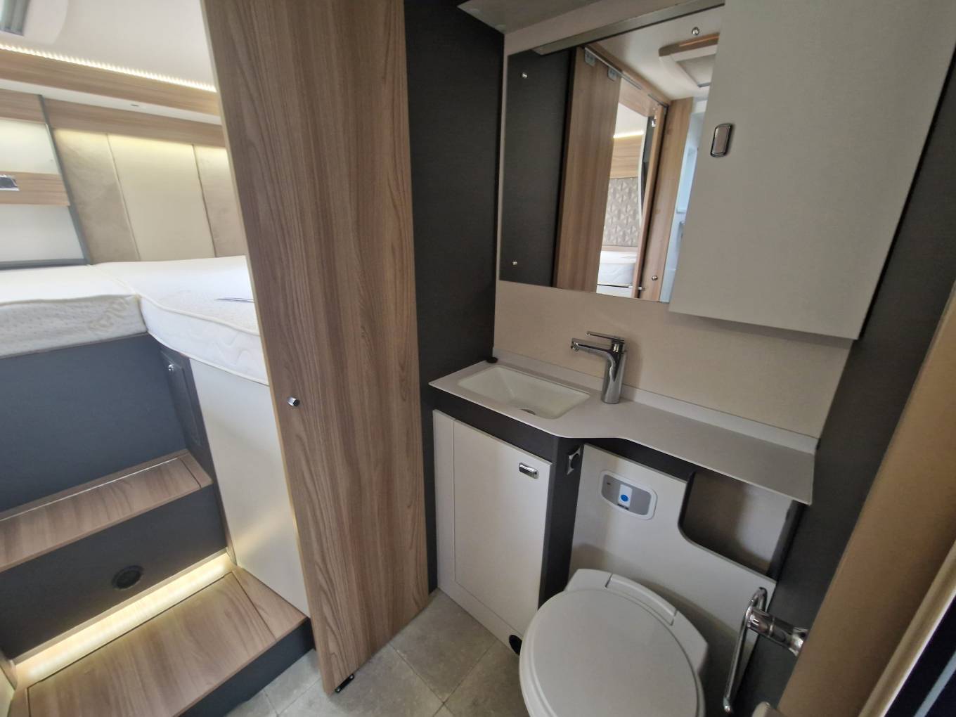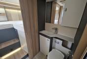 Entering the habitation door on the driver side,you turn right to the end bedroom where there are 2 generous singles and lots of very useful storage and can also be screened off for privacy. Internally upholstery is in great condition and the living area gives ample room for 6 people to socialize when the front seats are swivelled. The front dinette converts into a double bed with the belted seats coming up from under the sofas.The washroom has all you need including a separate shower,