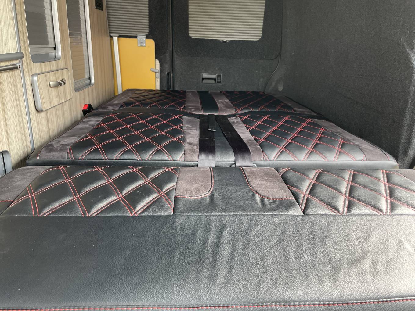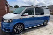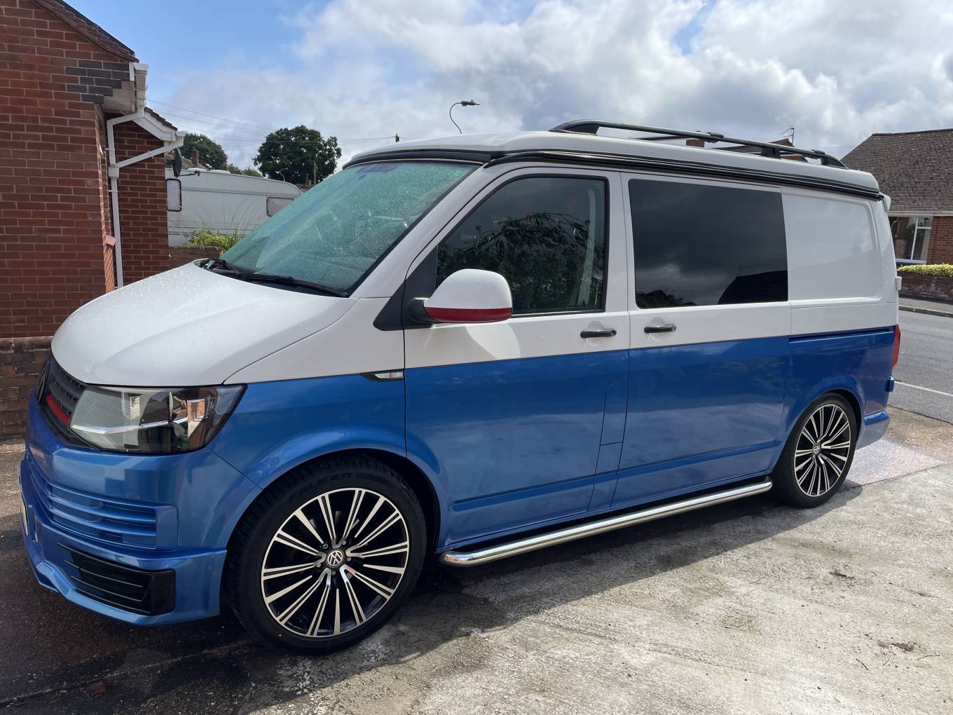 The base van is a low mileage Transporter T6 Sportline with head-turning two tone bodywork, chrome side pipes and stylish alloys.