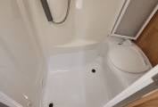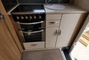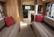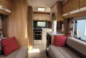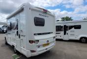 Inside, you'll find a thoughtfully designed layout featuring a spacious front lounge area, converting easily into a comfortable double bed. The fully equipped central kitchen includes a gas hob, oven, grill, and 3-way fridge, complemented by ample storage and workspace. Towards the rear, a generous washroom with separate shower cubicle provides all the comforts of home on the road.