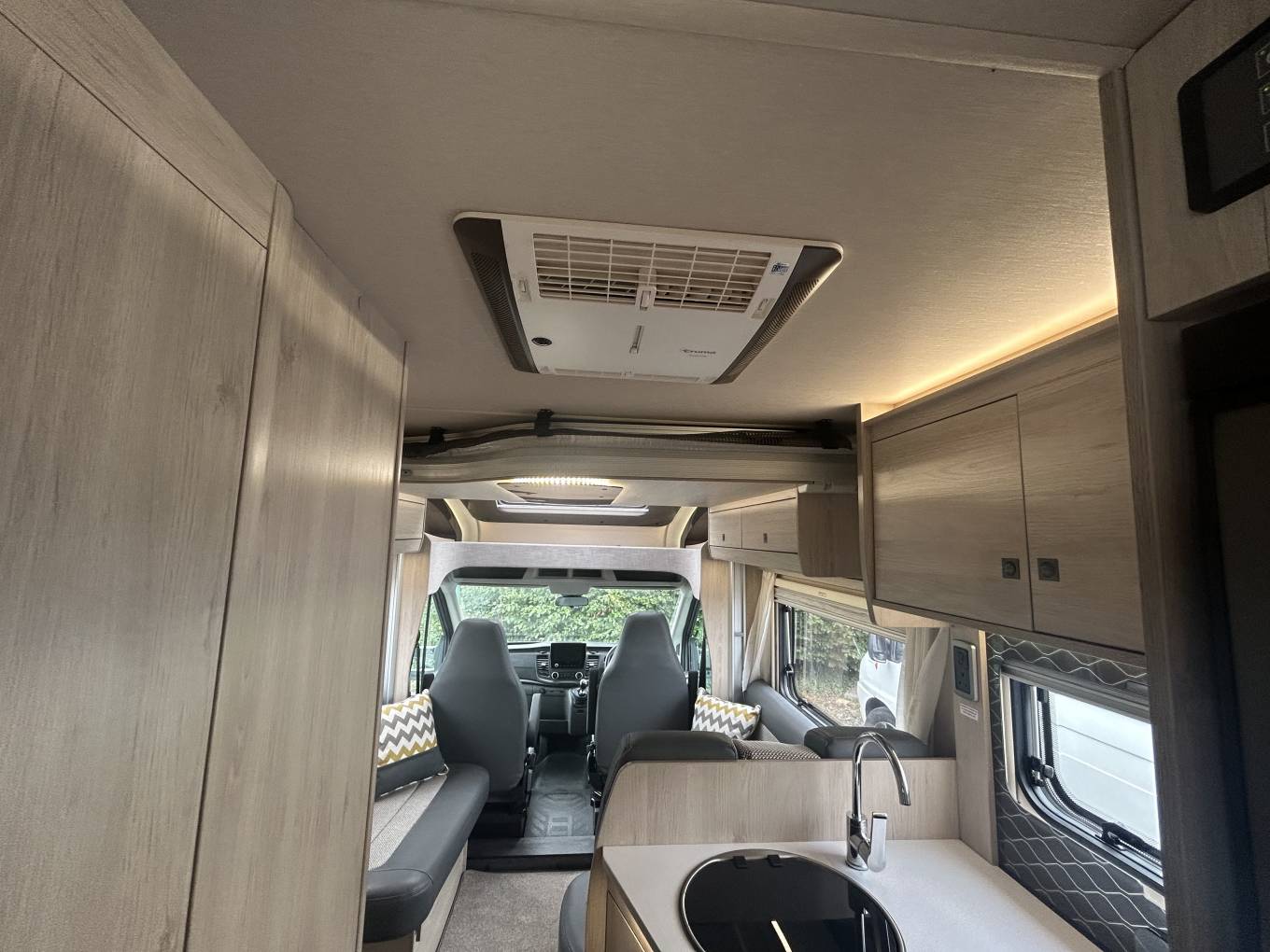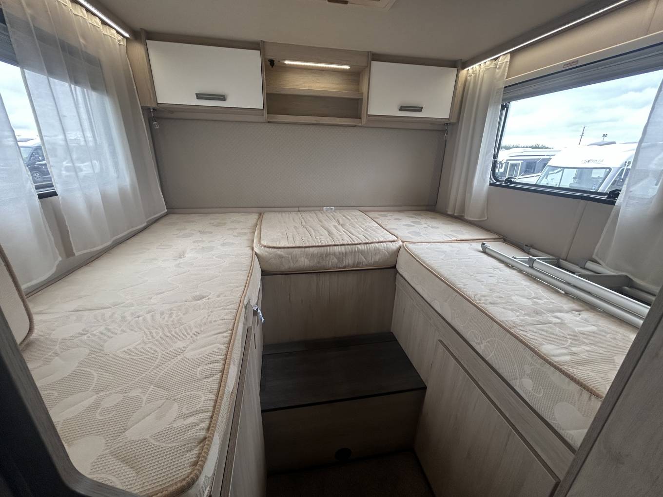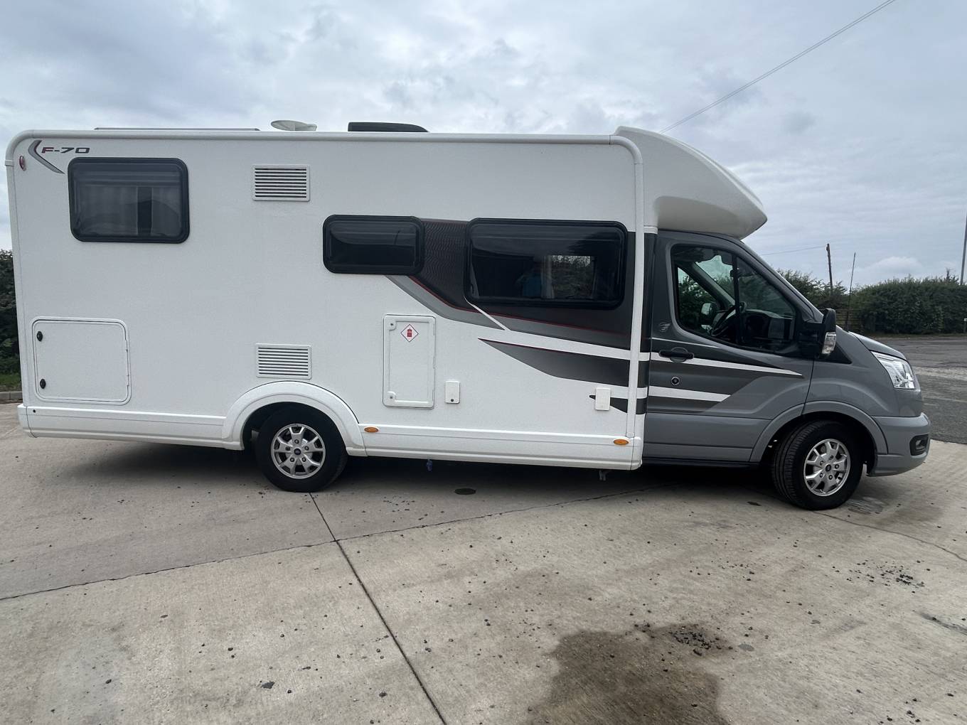 Here we have a Autotrail F70 on a Ford, 2litre manual, this motorhome is perfect for a family of 4 to have a trip of a life time. The cab area offers you everything you would expect from Ford, it includes aircon, cruise control, apple play stereo, steering wheel controls, built in blinds, reverse camera, both seats turn to complete the dining area, where you have two more seat belts on forward facing seats, also you can relax and enjoy family time. Above here is a manual drop down bed, the kitchen area has everything you need to cook up a family meal, including the oven, grill, fridge freezer, gas cooker top. Freshen up in the perfect wash room, with the shower cubicle, seperate cassette toilet and storage unit, the rear bedrrom has a twin raised bed that can be made into a double bed, two wardrobes and a TV, enjoy the comfort of the habitation aircon. Externally it has a wind out canopy, access to the garage, external BBQ, travel in style in this perfectly designed motorhome. It can be viewed in Mansfield Nottingham, finance and part exchange is available.