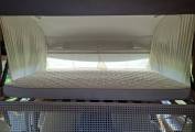 Progressing through the vehicle, the next section contains a single bed on each side, which can be screened from the forward habitation for privacy, but which also permits access for all to the rear bathroom.
