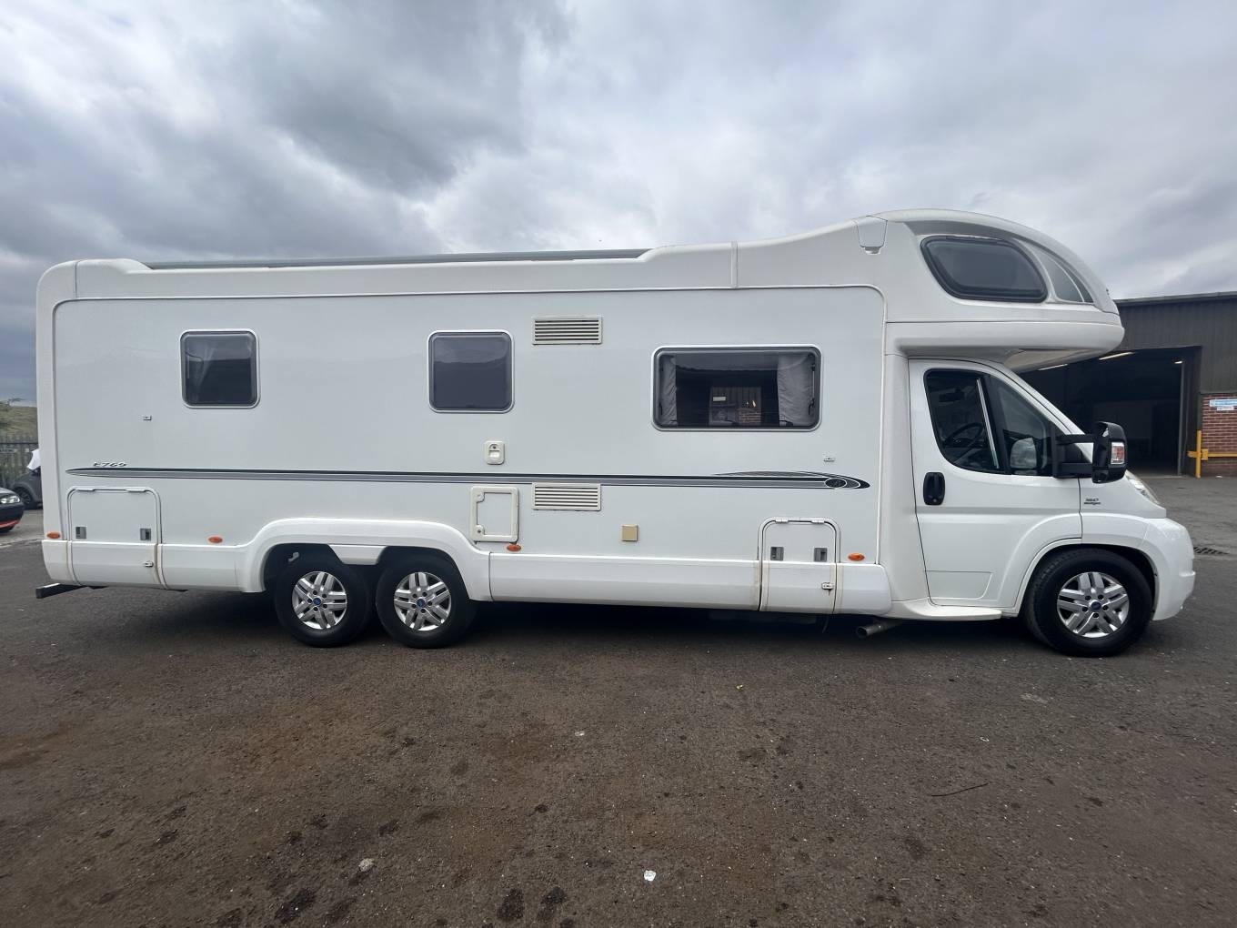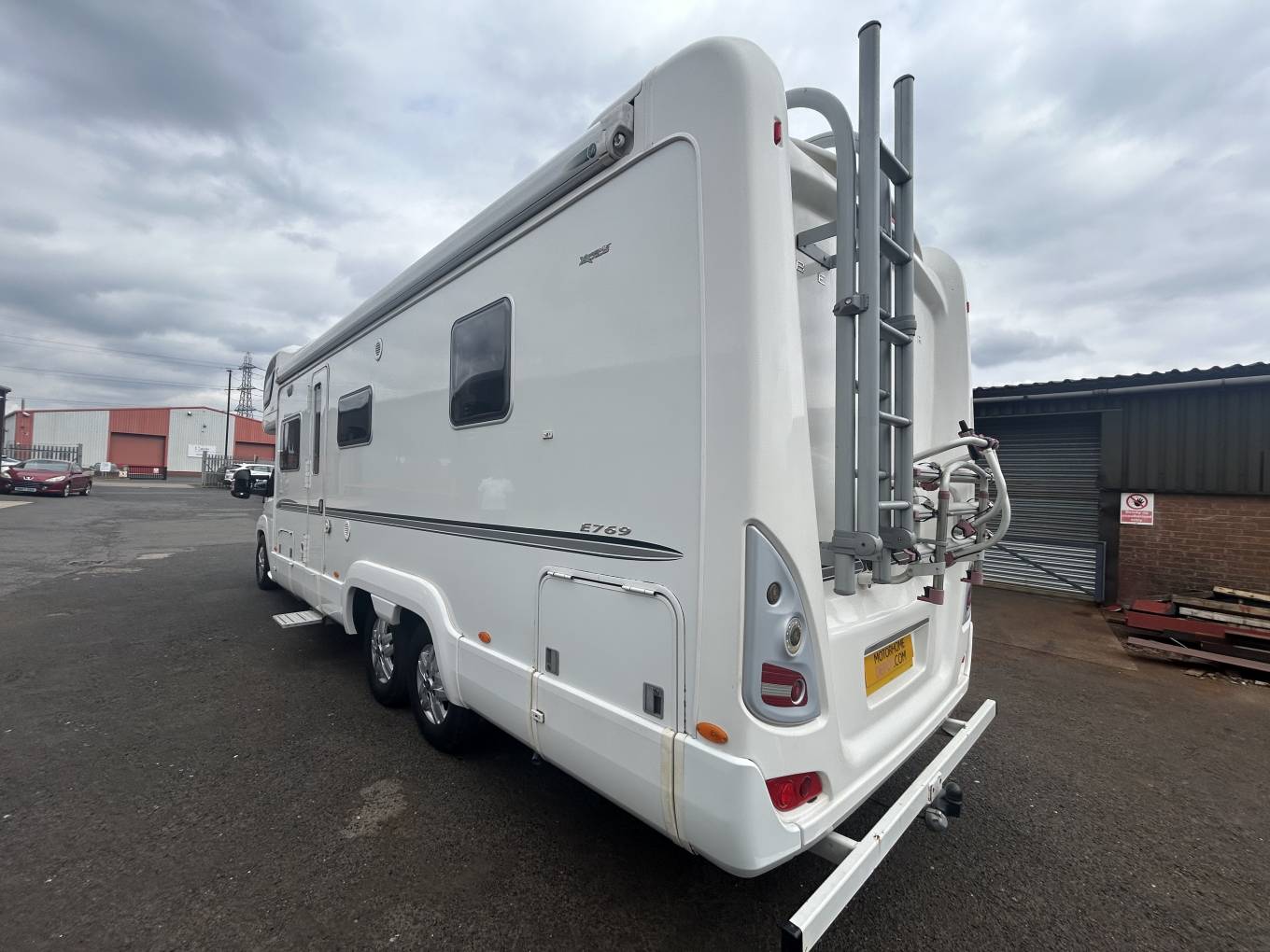 Here we have a Bessacarr E769 highline with a tag axle. This luxury motorhome has 6 berth and 4 belts with a 3litre diesel euro 5 engine, 6 speed manual gearbox and only 41300 miles. cab air conditioning. The versatile seating arrangement in the dinette/lounge can form a double bed, you’ve also got a double bed above the cab, the island bed completes the 6 sleeping, The kitchen is beautifully equipped with a full oven, grill, 4 burner hob, extractor fan and a 240v microwave and a large fridge and separate freezer are located opposite. The work surface is larger than average and has a custom-sized chopping board . The washroom comprises a separate shower cubicle, washbasin and cassette toilet. There are numerous cupboards for storage. The motorhome has a reversing camera, tow bar, 4 cycle bike rack and outside storage and access to a garage. This motorhome can be viewed in doncaster by appointment only, Finance and part exchange are available.