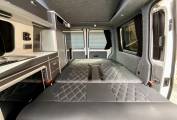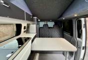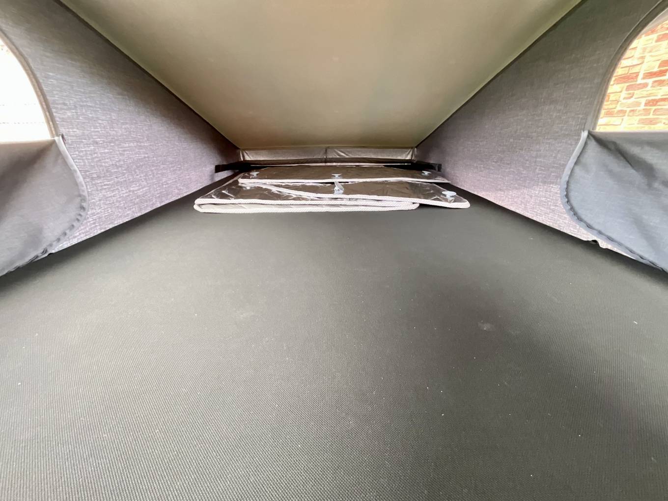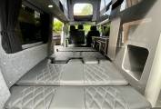 At the top, the pop top forms the second bed, allowing plenty of room and openable mesh windows to allow air to flow freely through the van.