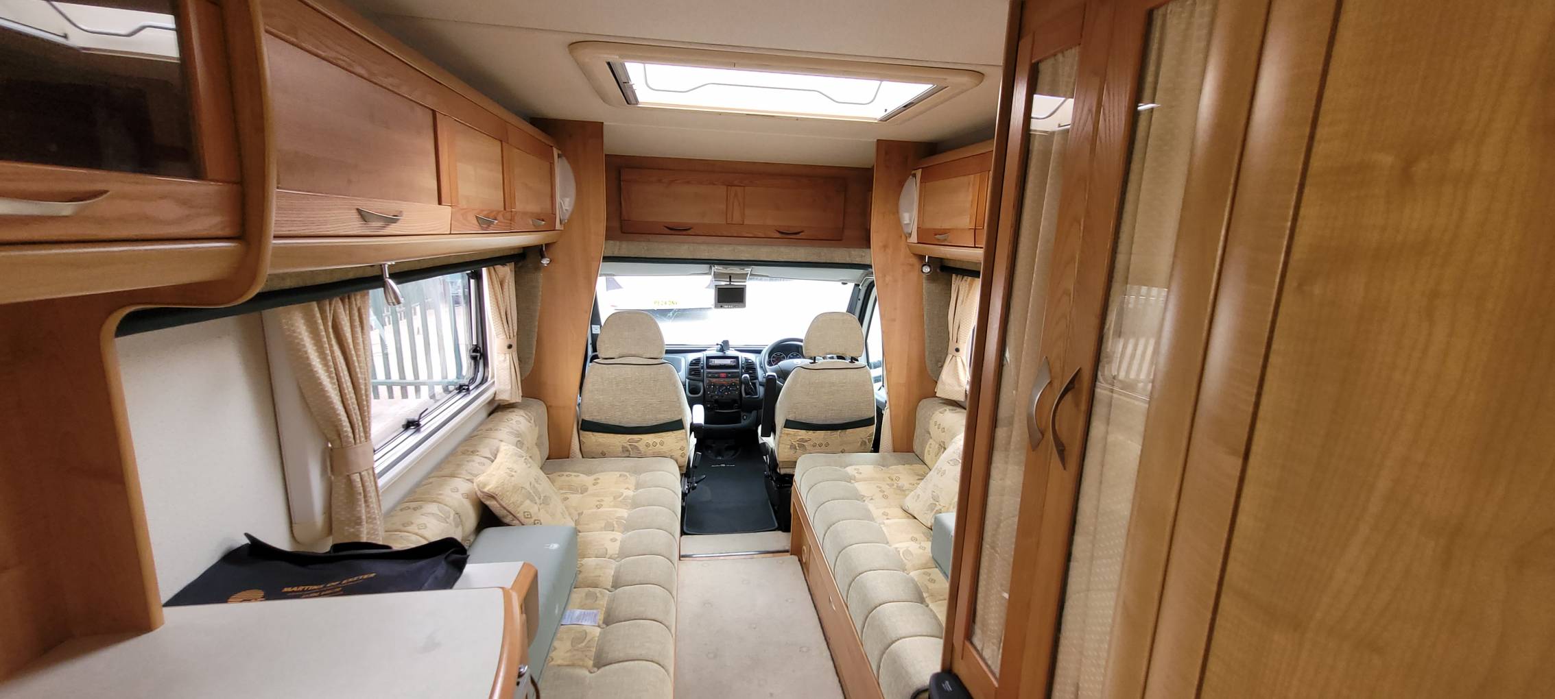 Ample storage throughout, including over-cab lockers and wardrobe space.