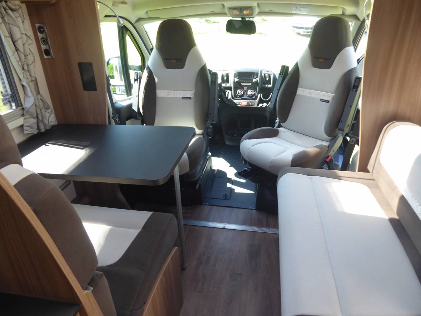 The lounge is enhanced by two swivel seats in the cab for a comfortable social space