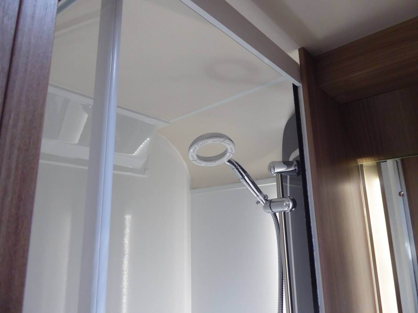Dedicated luxury washroom including toilet, hand basin and separate shower cubicle with large shower head.
