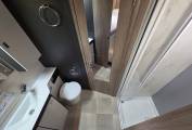Moving slightly forwards is the well equipped and spacious bathroom, this compromises of a separate shower cubicle, sink, toilet, mirror and storage. This has 2 doors, so that it can be completely shut off from both the front and back of the motorhome which gives great privacy.
