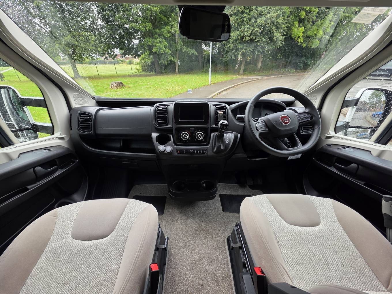 In the cab it has the desired 9 speed automatic gearbox, touchscreen headunit that you can link your phone upto to give you Android Auto or Apple maps, Reversing camera, cruise control, black out blinds, electric windows, and mirrors and also comes with a separate TomTom Camper Sat Nav