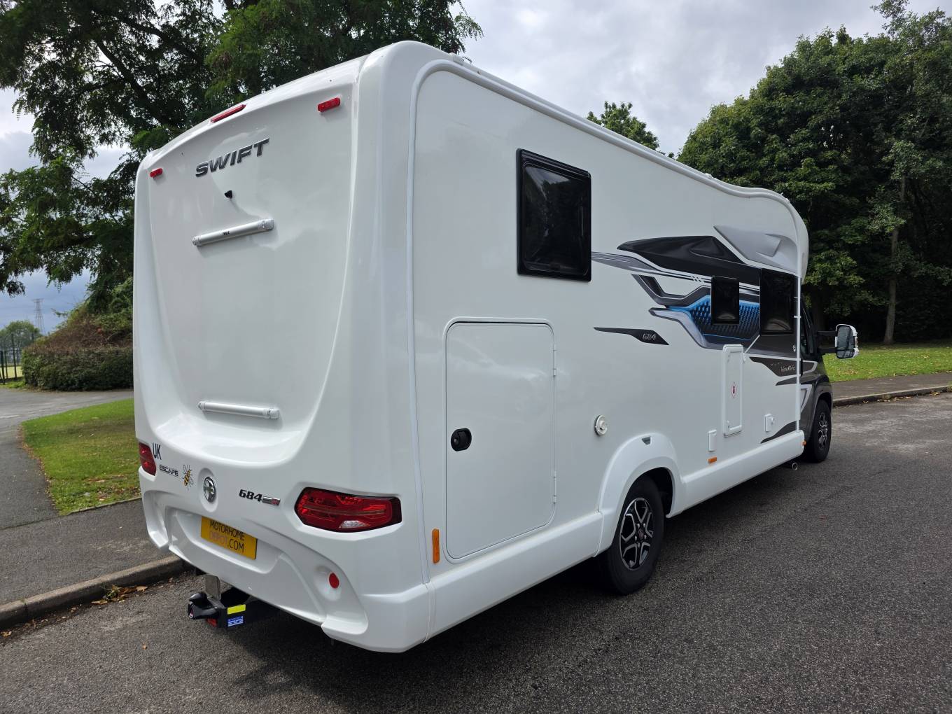 Motorhome Depot are pleased to present this 2023 Swift Escape 684 with under 5,000 miles from new. This luxury motorhome also has some great extras, including Habitation Air Con, Gas Low Refillable gas, Air Suspension, and so much more. It’s built on a Fiat Ducato chassis with a 2.2 litre diesel engine and the desired 9 Speed Automatic Gearbox