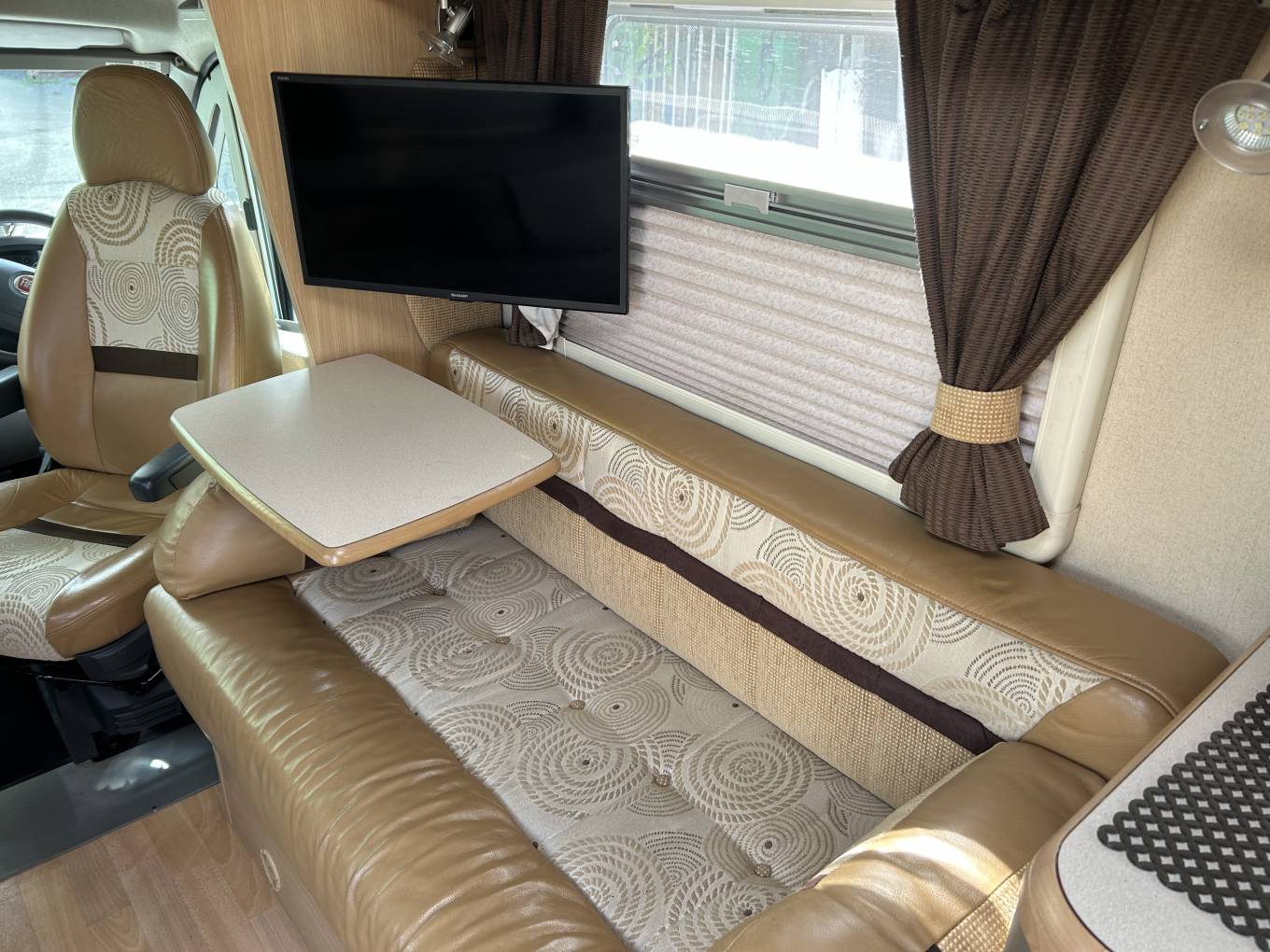 This is a fantastic large motorhome that would be absolutely ideal for 2 people looking to spend long periods travelling around the UK and Europe. It would also suit someone who is looking to stay on a fixed site for long periods. It is a wonderful living space that is both warm and cosy in the winter and cool in the warmer summer months and is definitely an all year round motorhome. The main attraction of this motorhome is the extremely comfortable and spacious living area with comfortable sofas and seats up front, a well equipped kitchen and a rear fixed French bed. Whilst this motorhome can sleep up to 6 people it does only have 2 travelling belts - so it is perfect for a couple or single person who is comfortable with a larger vehicle. It is presented in great condition for its age with everything working well and has an extensive service history.