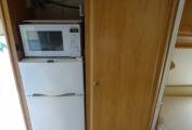 The kitchen area is well equipped, there is enough work top to easily prepare family meals. At the rear the comfortable French bed lifts up providing lots of under storage, adjacent is the integrated shower and bench seat toilet. There is a basin and vanity unit in the bedroom.