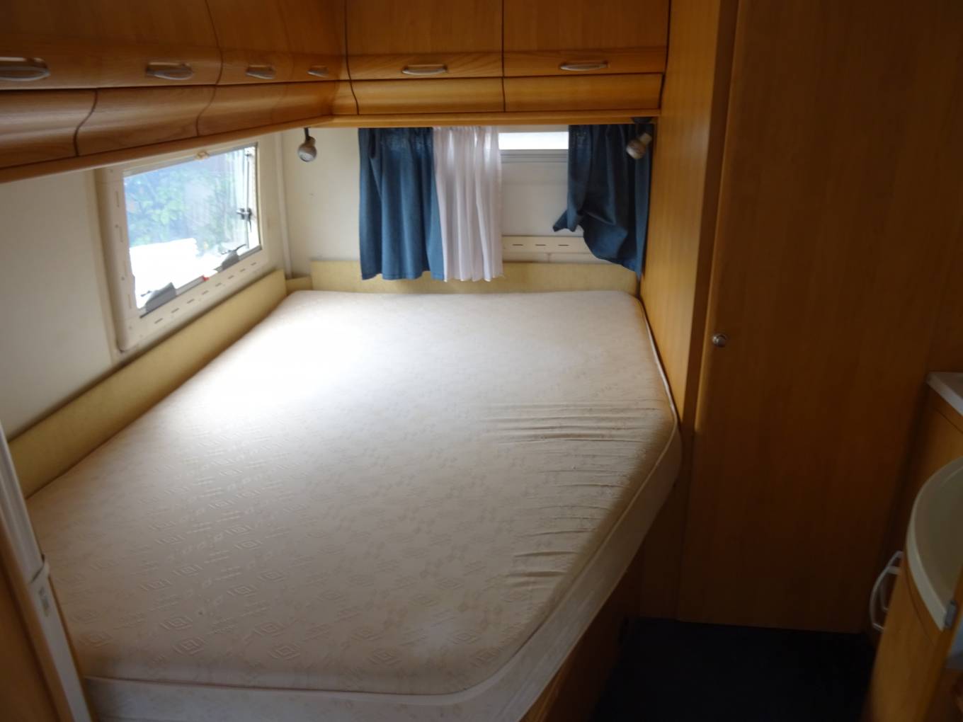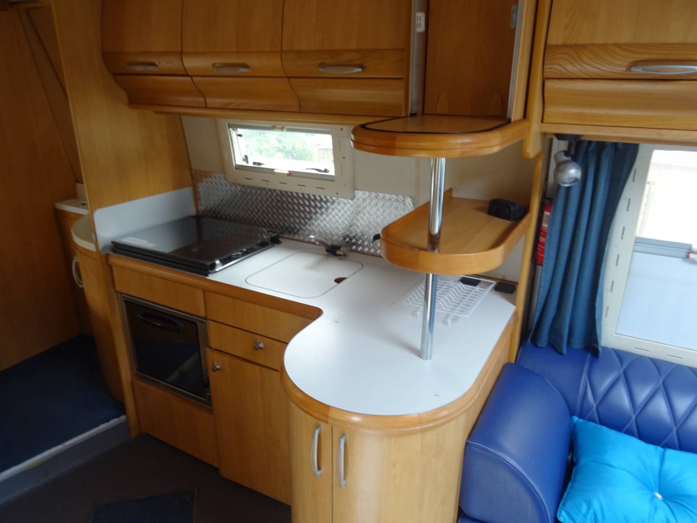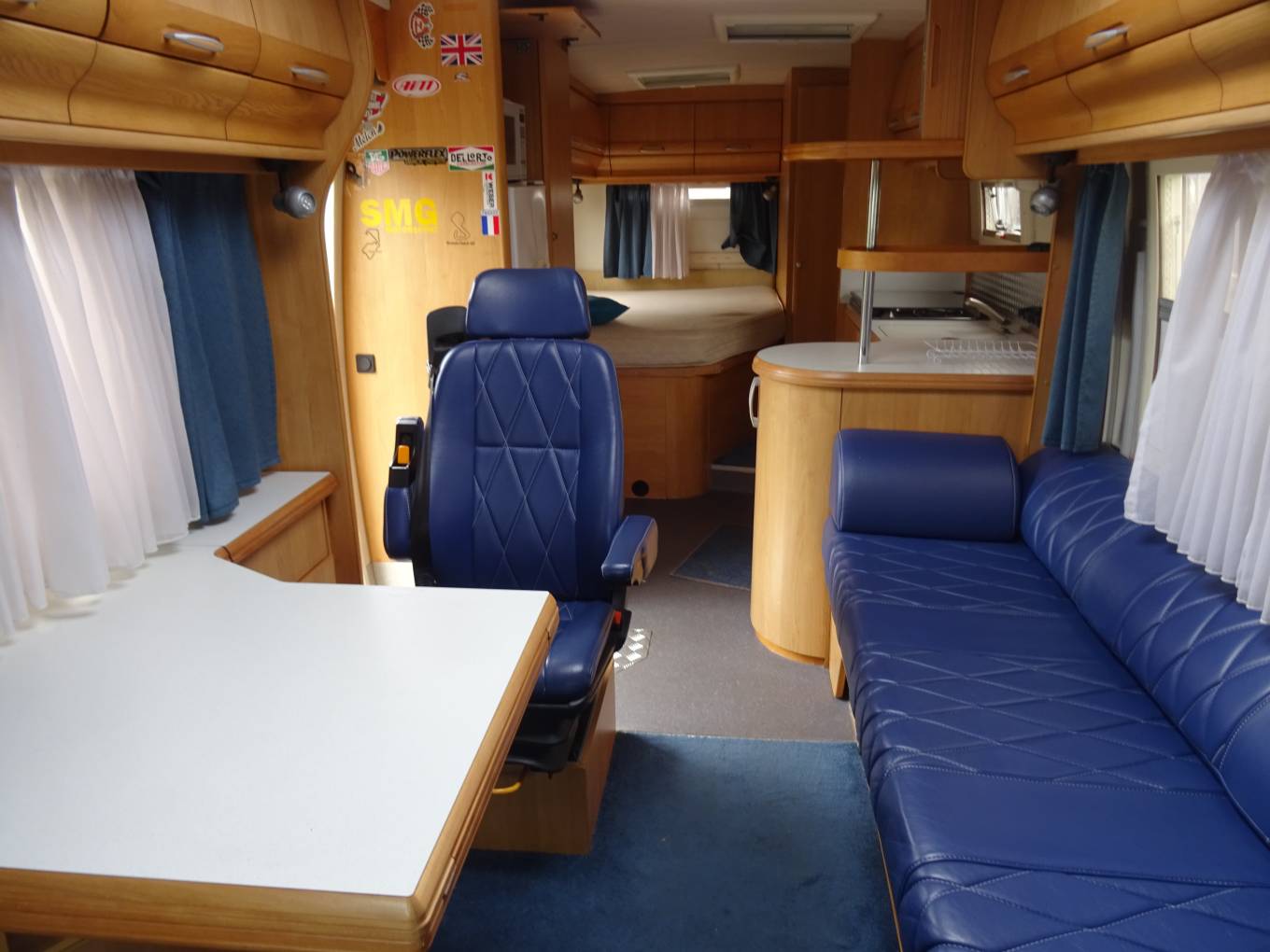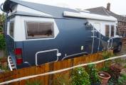 Lounge comfort will not be beaten as this Hobby has gorgeous re-upholstered Bentley blue lounge/dinette. The original rear fixed travel seat remains and makes for a great individual dining point or work station. Both Cab seats swivel, the fold out table and lockers are solid and robust. A double bed can be made up in this area*.