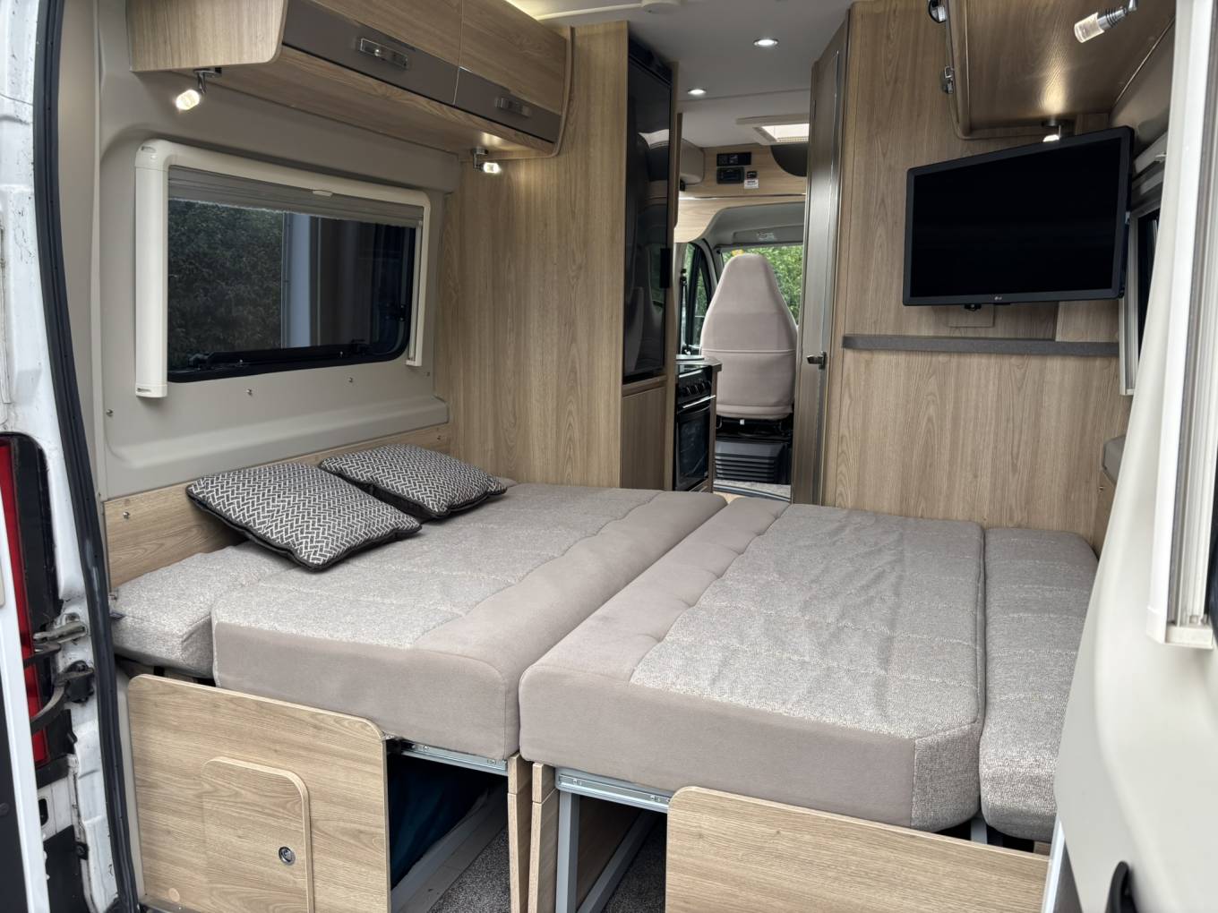 This motorhome comes with (but not limited to): Solar panel, Reversing camera, Windout awning, LPG underslung tank (refillable), TV in rear lounge, Victron electronics, Upgraded Solar charger, Additional leisure battery, Swivel seats, Extendable dining table, Electric step, Thatcham approved alarm (Cat 2-1)