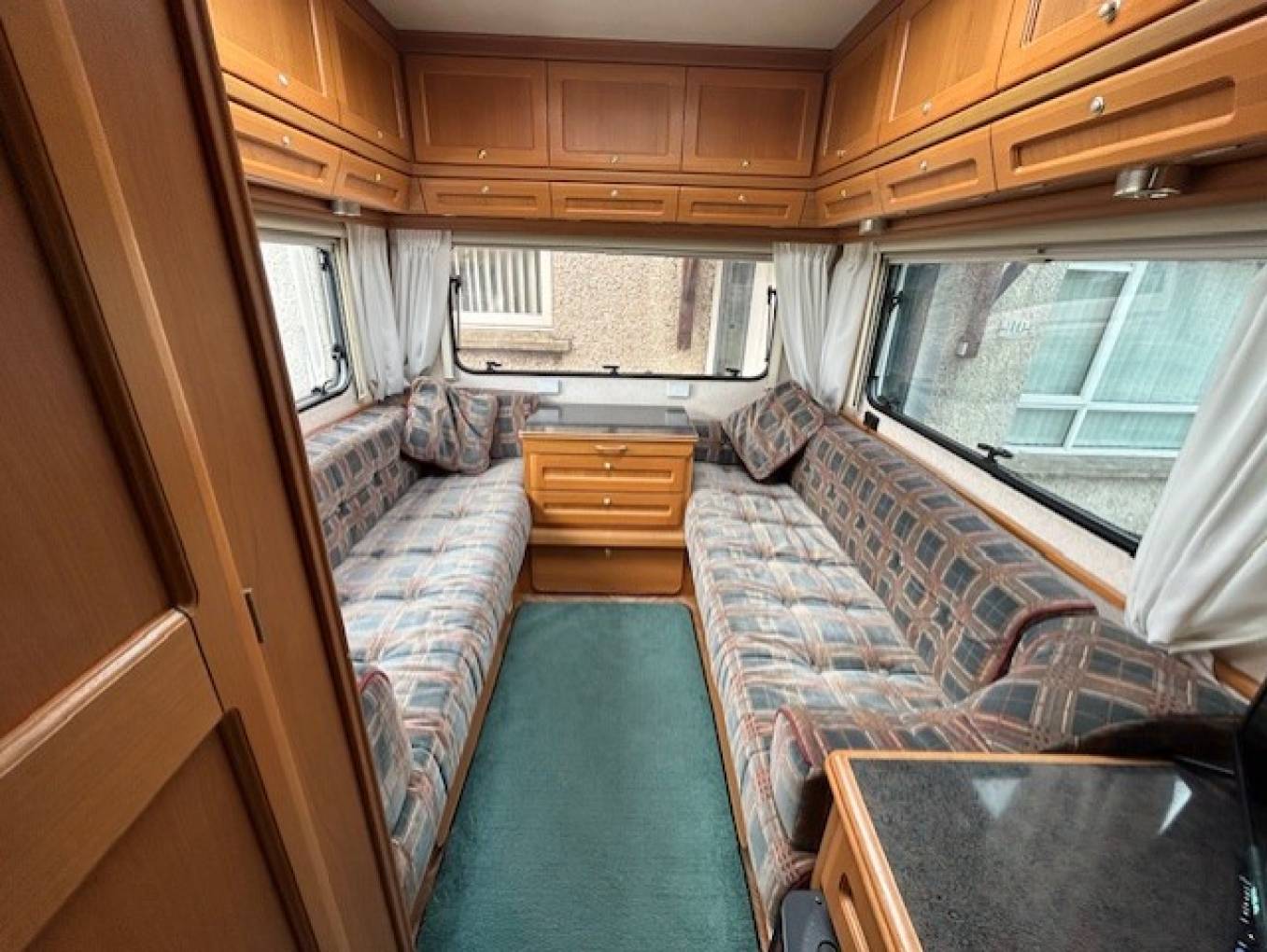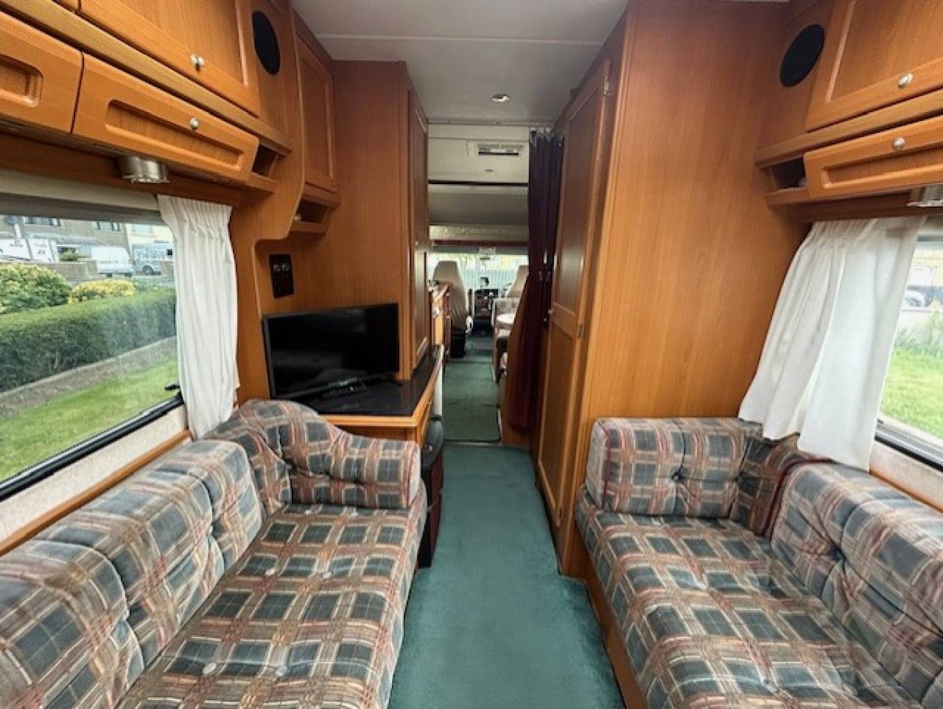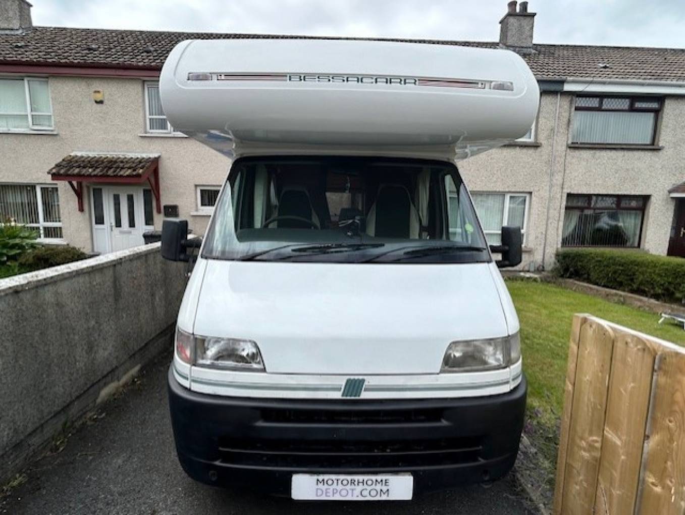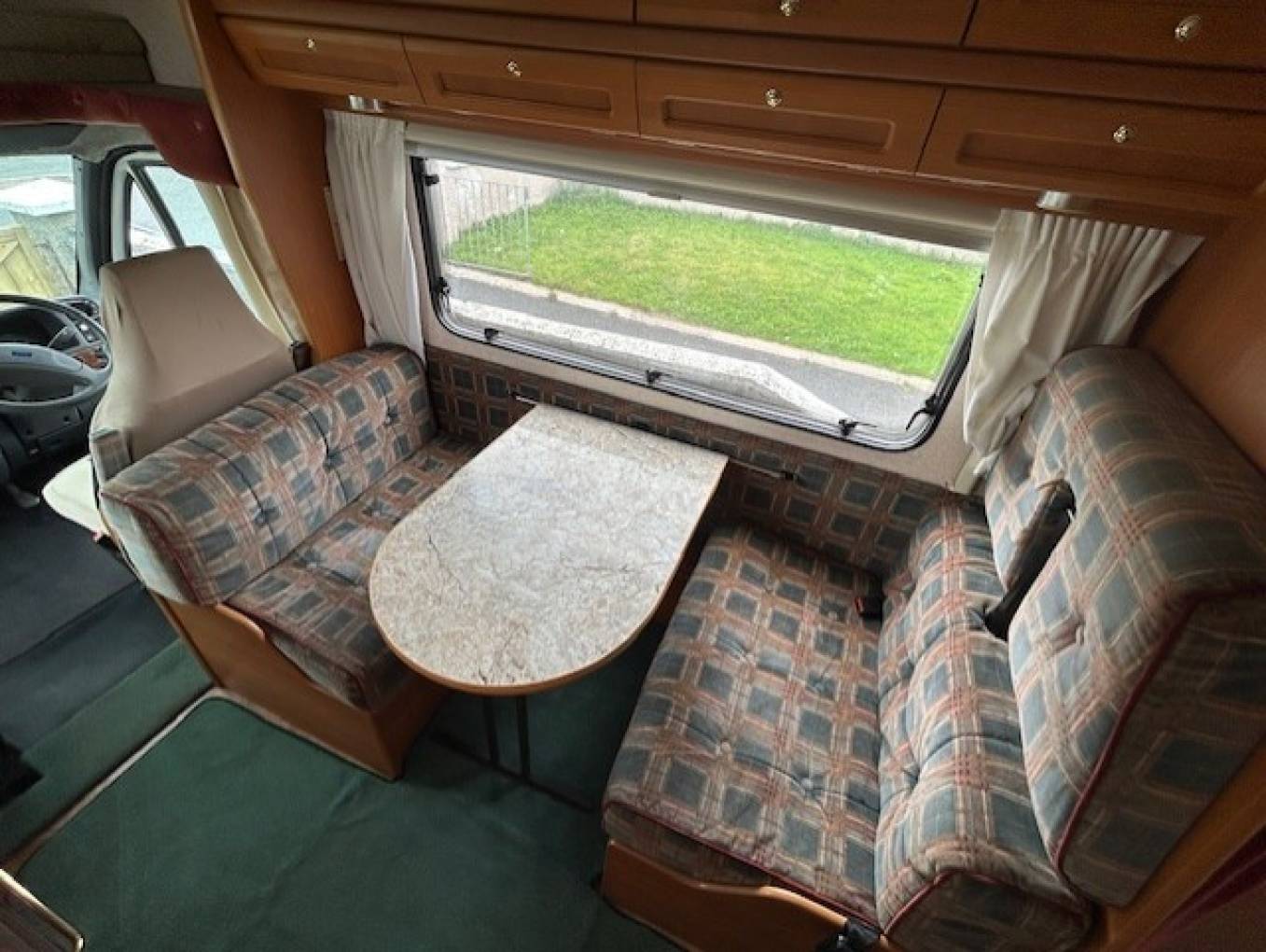 1999 BESSACARR E695 COACH BUILT MOTORHOME FOR SALE. Based on a Fiat Ducato 2.8 TD chassis with a manual transmission. Sleeping places for 6 people with 4 travelling seat belts. Presented in good condition with 106,125 miles travelled and has MOT until August 2026. At the rear of the motorhome you have a U shaped lounge for sleeping, dining and relaxing. The double dinette will convert into a double bed and there is another bed above the cab. Kitchen is well equipped with a full sized cooker, sink with mixer tap and a 3 way fridge freezer. Good storage throughout the habitation area. Washroom has a shower, cassette toilet and a wash hand basin. The motorhome can be driven on a standard car licence.