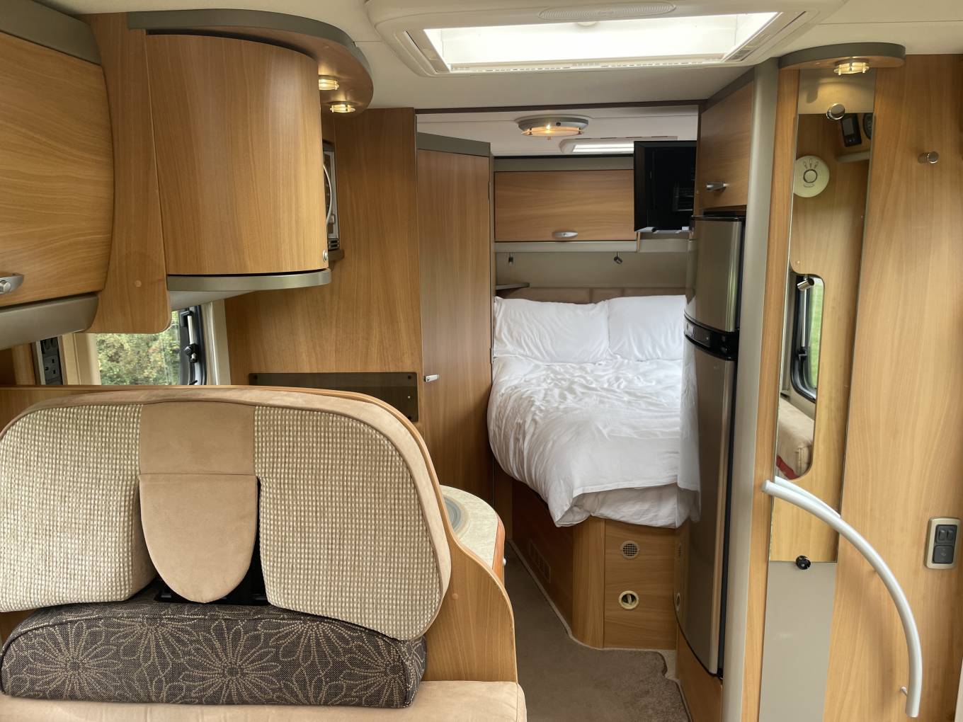 Inside there is a comfortable seating area with an extendable table in the dinette area giving you room for eating, relaxing and living and which can then make up into a double bed if required. Towards the rear there is the ever popular generous and comfortable looking French bed all ready for a good nights sleep.