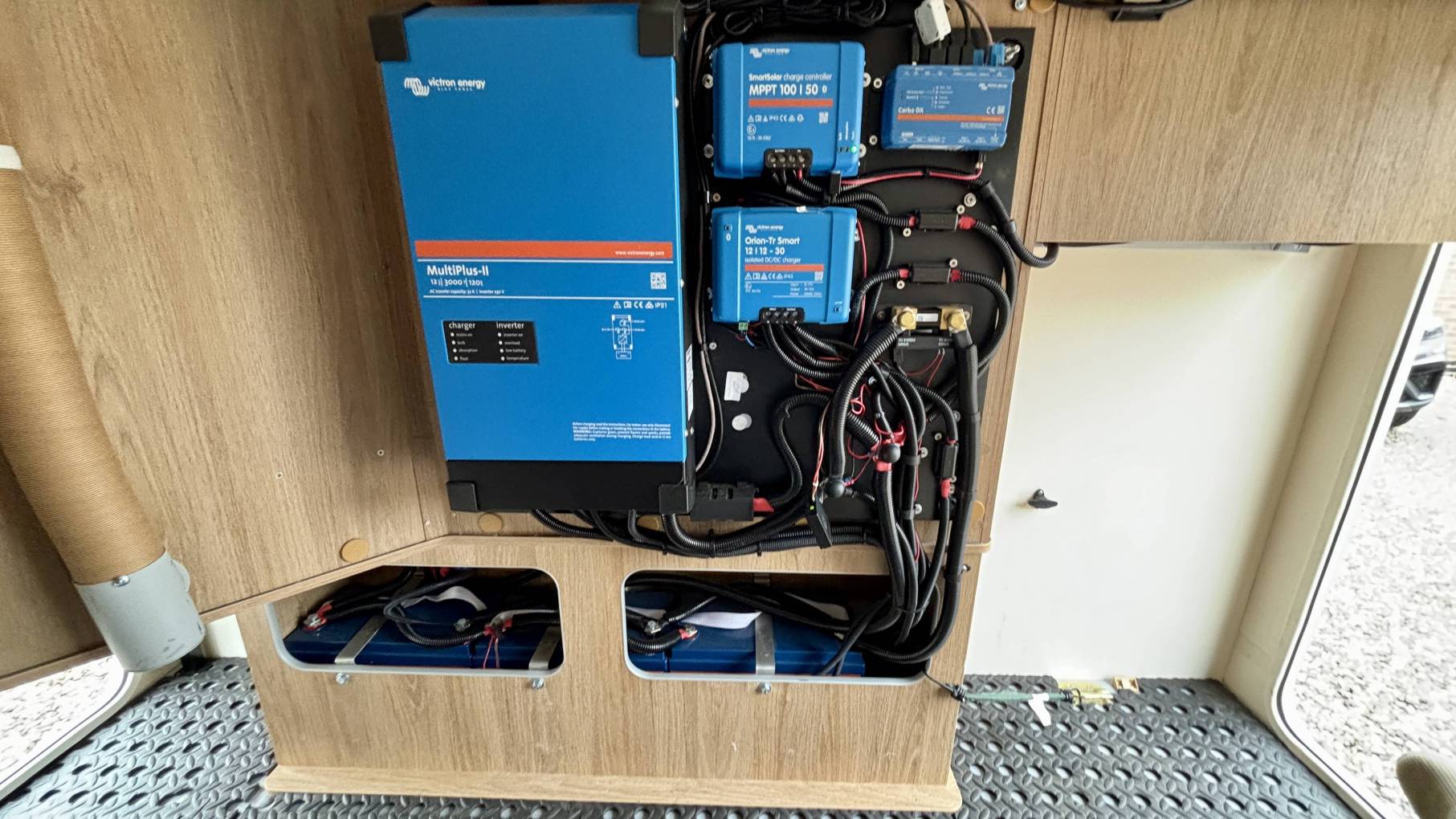 What really sets this T-Line apart is the attention given to its off-grid touring capability. Fitted with a full Gaslow system (2 x 11kg bottles), 460W of solar, a 3000w Victron Charger/Inverter, Victron solar controllers, and a 300AH lithium battery setup, this van is truly ready for extended wild camping. A Victron GX50 touchscreen control panel and remote inverter panel give you full visibility and control of the electrical system, with a 4G WiFi system onboard to keep you connected on the move.