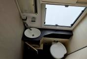 Moving forward you will find the separate shower cubicle and a roomy washroom adjacent with a Thetford cassette toilet and vanity handwash basin. With the use of the washroom door the rear of the motorhome can be shut off for privacy.