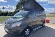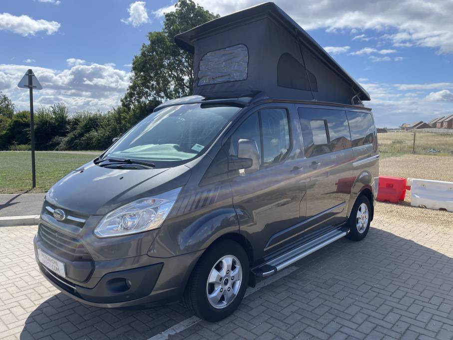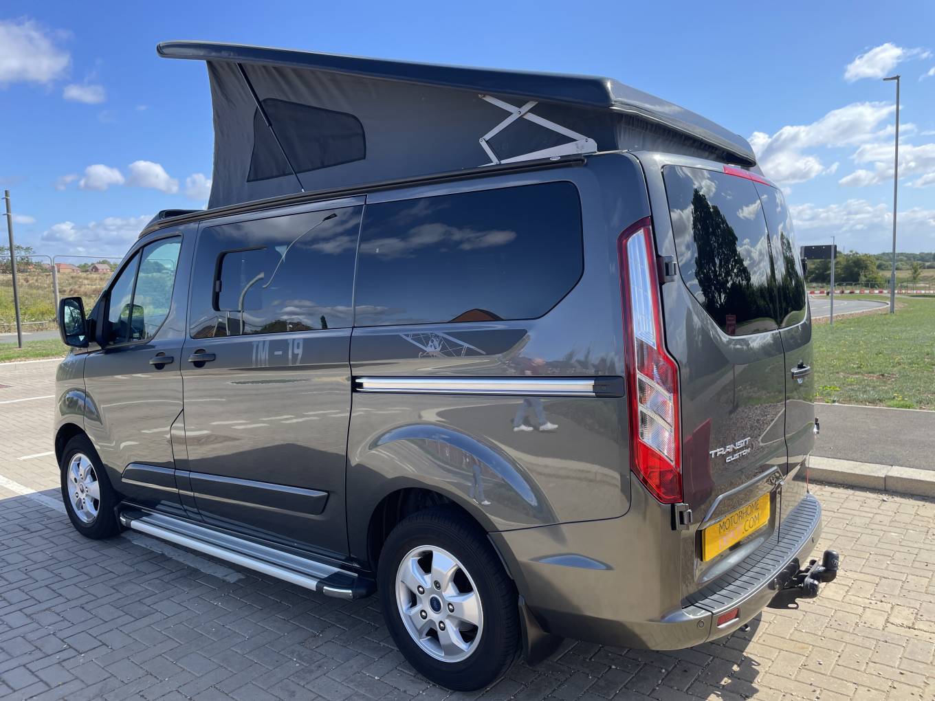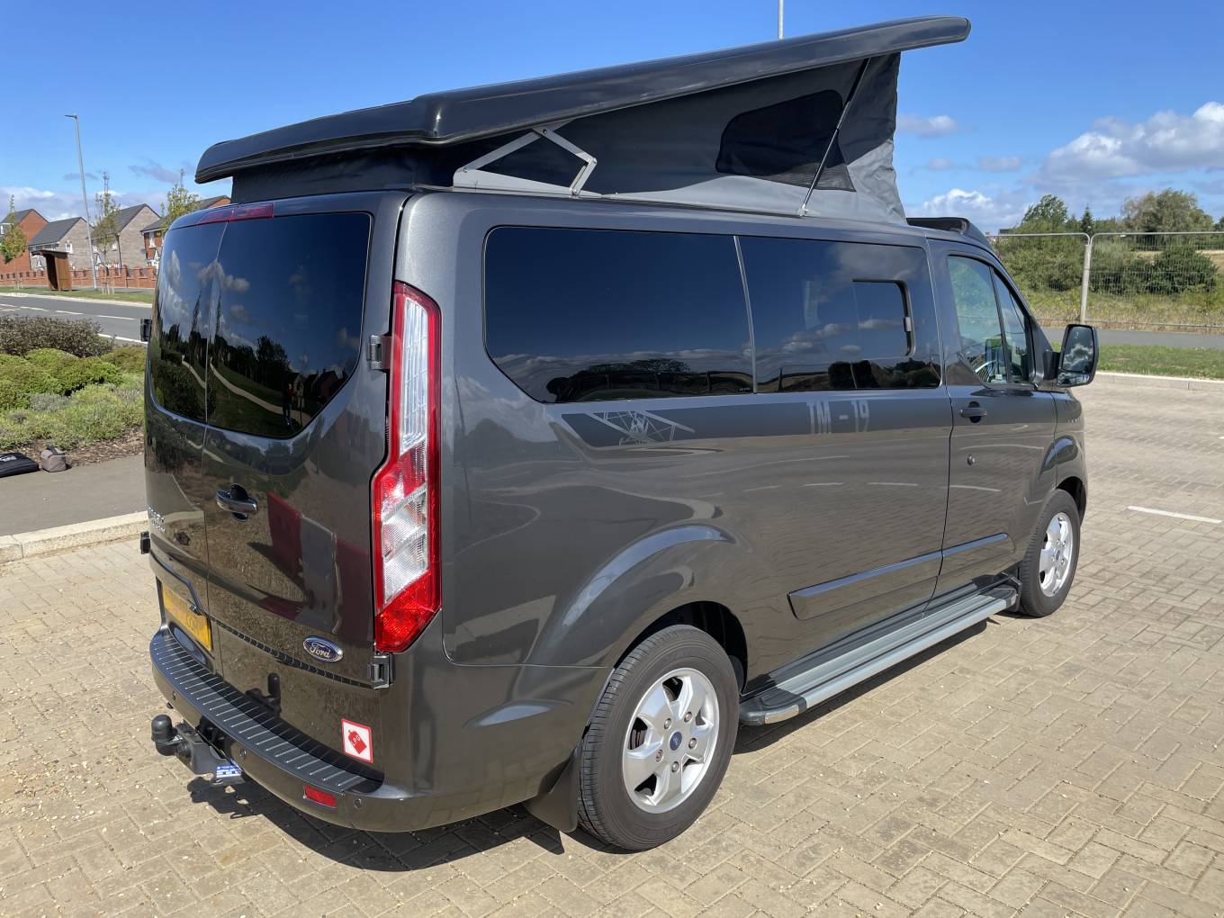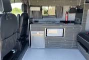 Here we have a ‘Tiger Moth’ - number TM19 - Ford Transit Campervan conversion. The exterior looks beautiful in black with silver running boards and has an awning rail if you want to extend your living space.