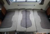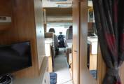 The sleeping accommodation is made up of a large double above the cab, another double in the middle of the vehicle and a large double at the rear. The kitchen is fully equipped with extended preparation area, fridge with freezer box, gas hob, sink and microwave and a separate oven and grill. There is loads of storage available in drawers, shelves and overhead lockers.