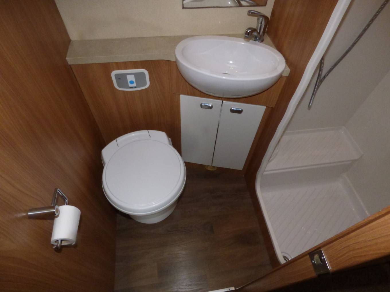 The washroom has everything, large shower cubicle with head height shower, vanity unit with washbasin and w.c.