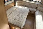 This is the popular panoramic rear lounge layout offering the option for a large double or 2 good sized singles, the triple aspect lounge favoured by British motor-homers often forced by inclement weather to spend time inside.