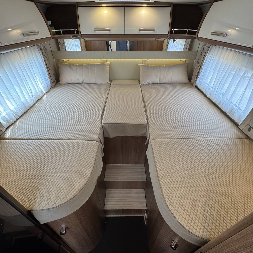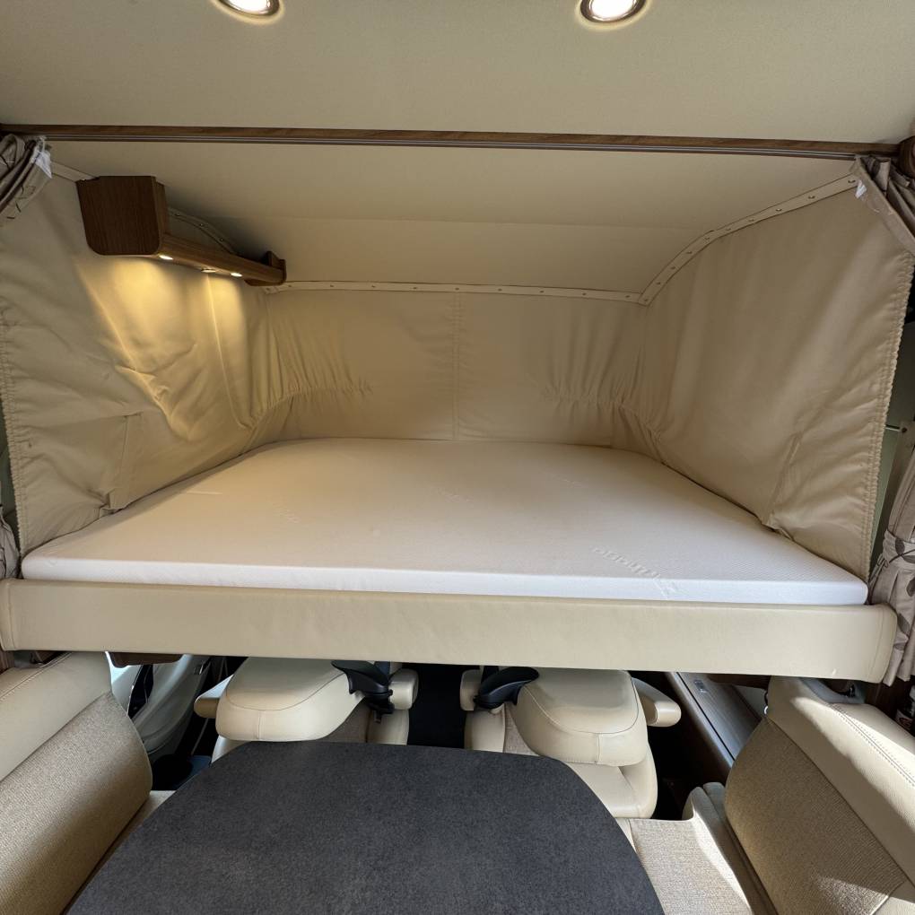 The C-Compactline I 143 LE is a 4 berth that includes two large fixed singles to the rear and drop down bed over the cab area. Complete with all the impressive refinements that comes with a Carthago, this model will not fail to impress. With an L-shaped lounge area providing seating for 5 people, well equipped central Galley kitchen and combined bathroom comprising of toilet, sink and shower that can be divided off from the main living area. Finally a large scooter garage is located at the rear - accessible from both sides. Both luxurious and extremely well equipped -in this motorhome you will travel in style!